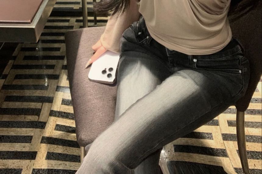 Long-Sleeve Asymmetrical Neck Off-Shoulder Plain Ruched Blouse