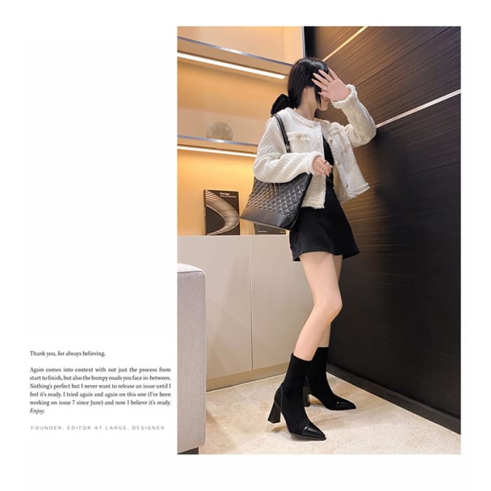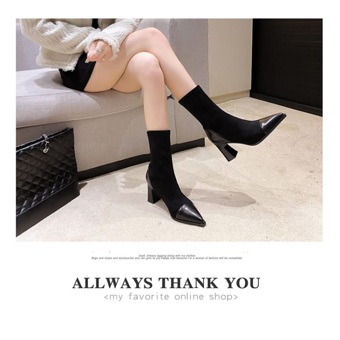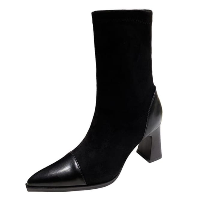 Spitze Stiefel mit Blockabsatz und halbhoher Stiefelette