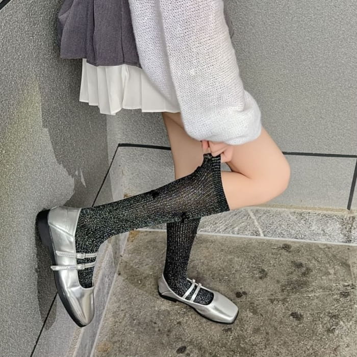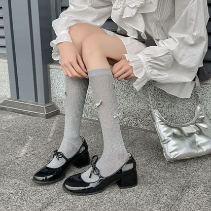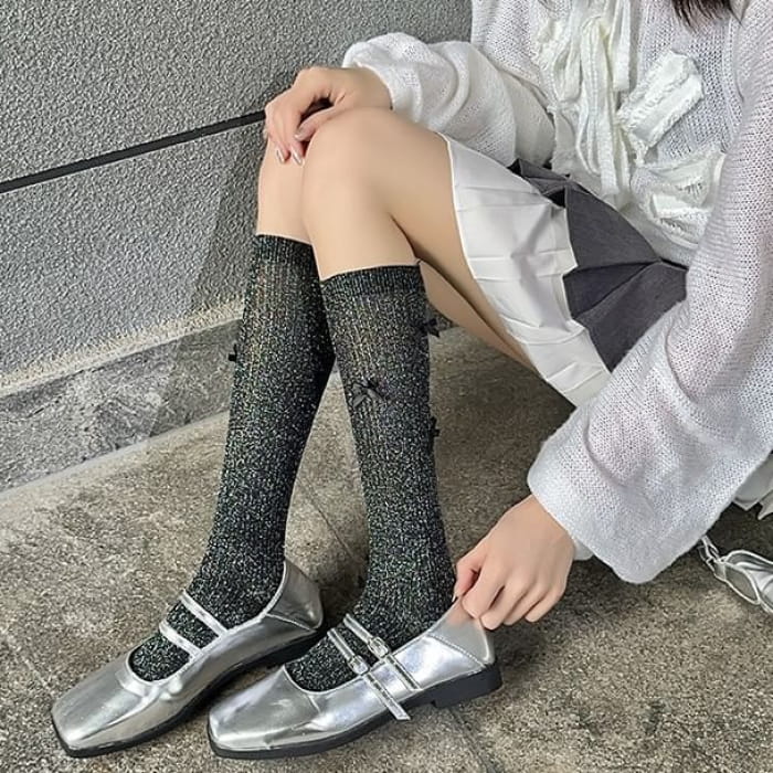 Gerippte Kniestrümpfe mit Schleife und Glitzer