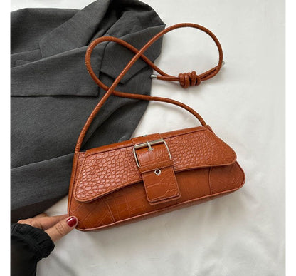Buckled Faux Leather Shoulder Bag