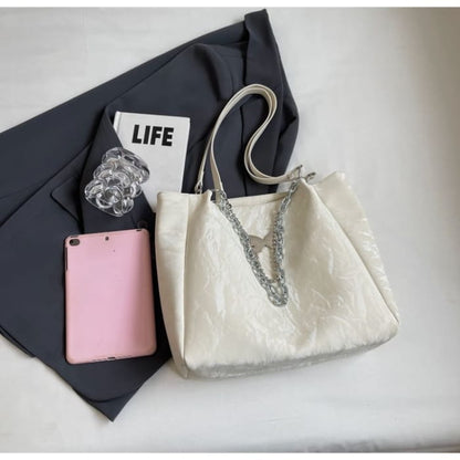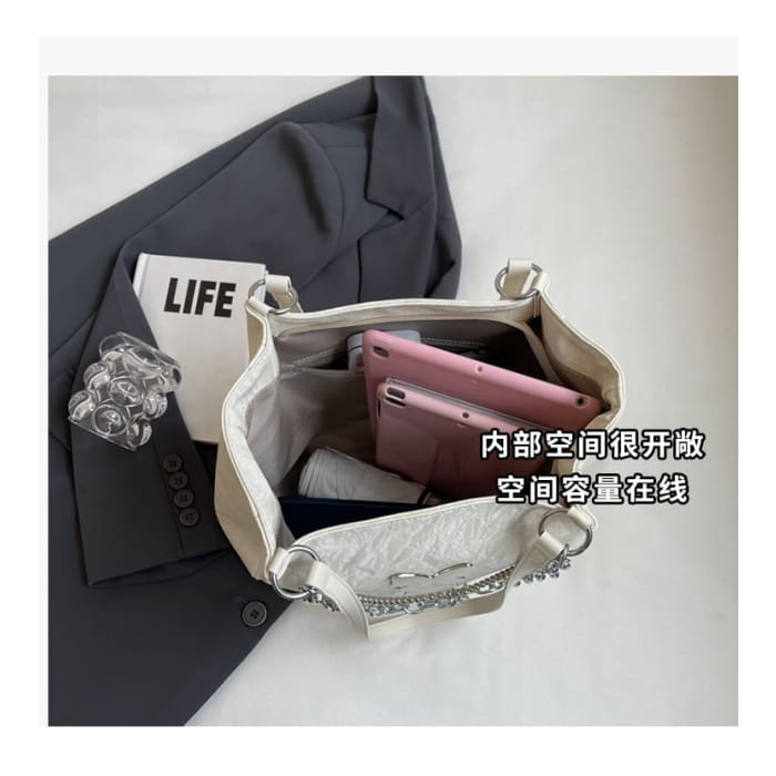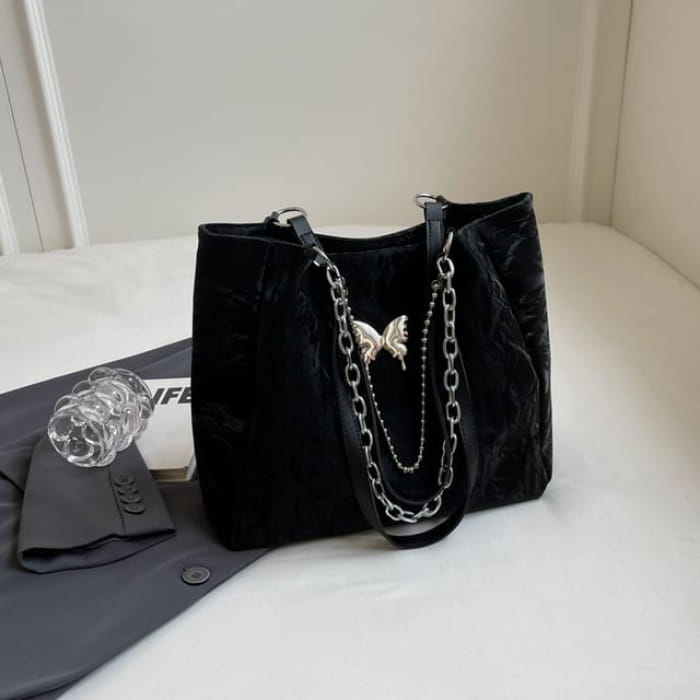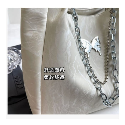 Tragetasche aus Kunstleder mit Ketten und Schmetterlings-Akzent