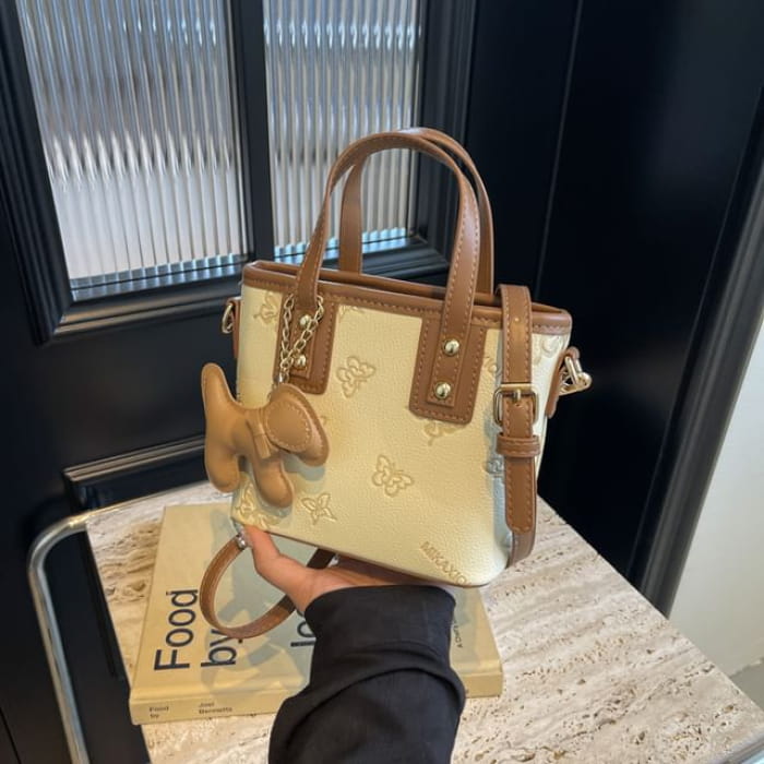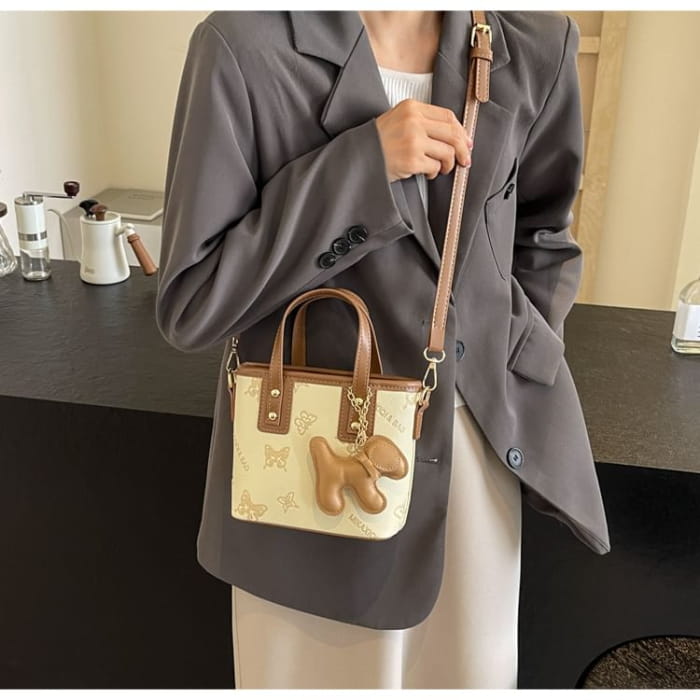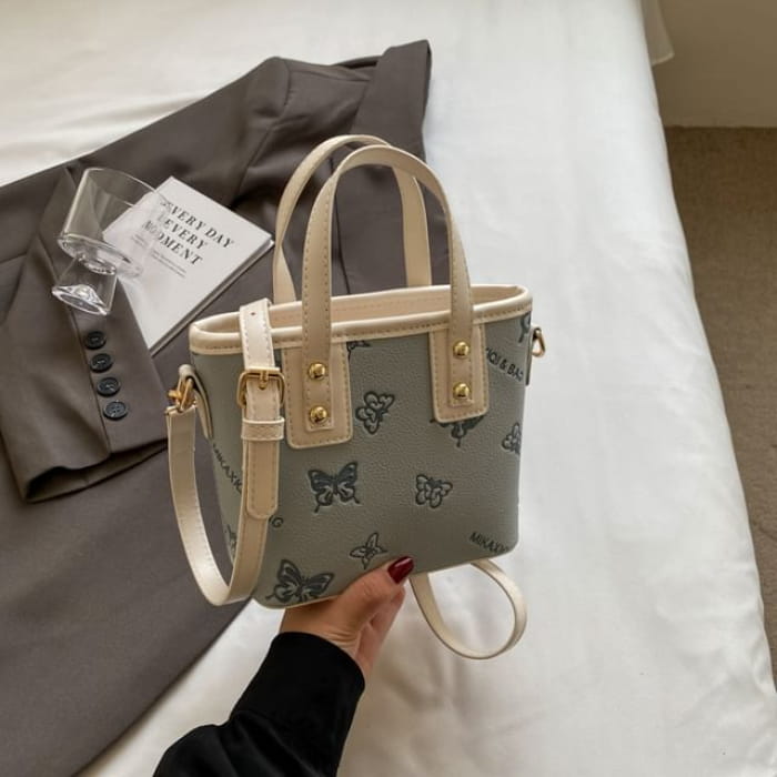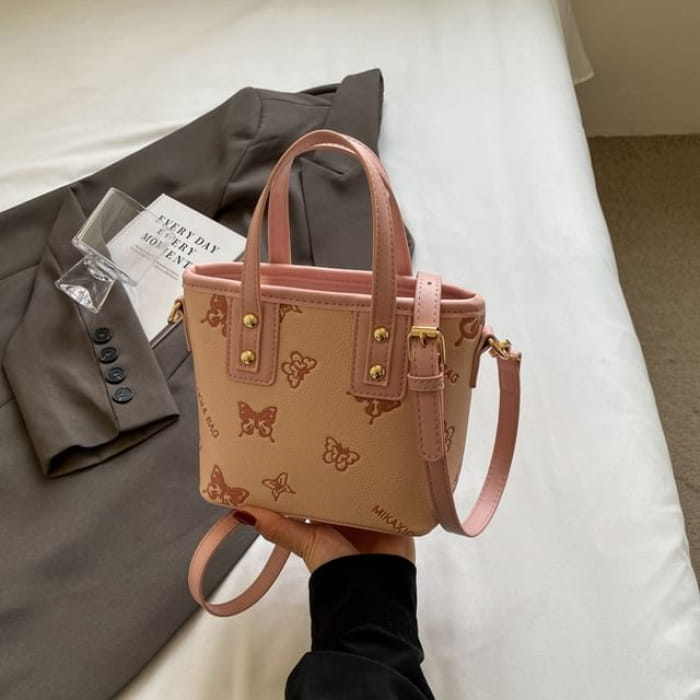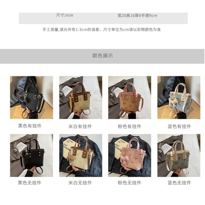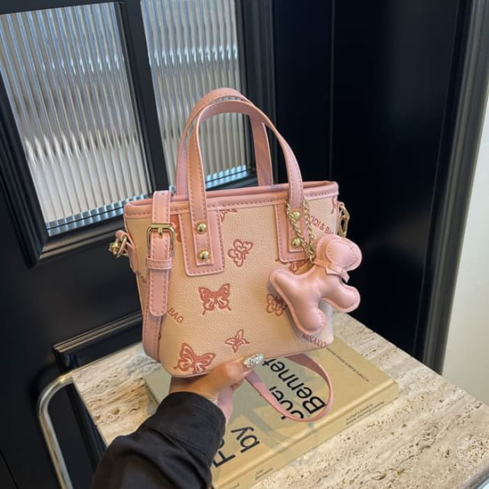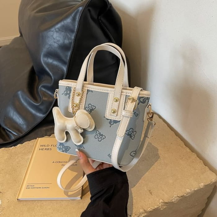 Umhängetasche aus Kunstleder mit Schmetterlings-Print / Taschenanhänger / Set