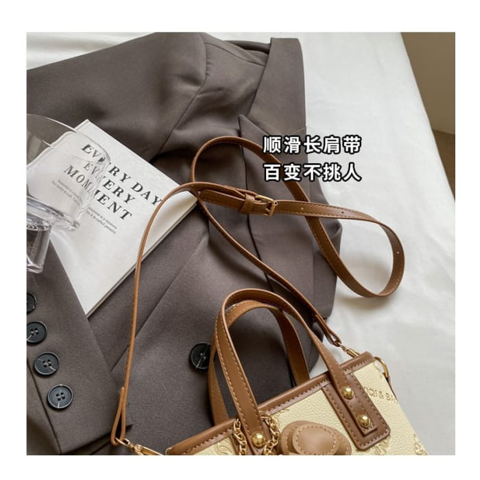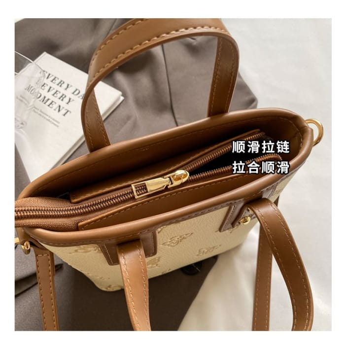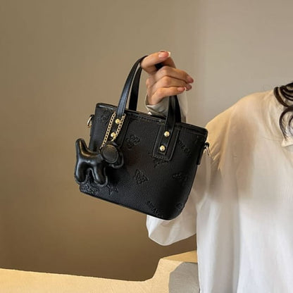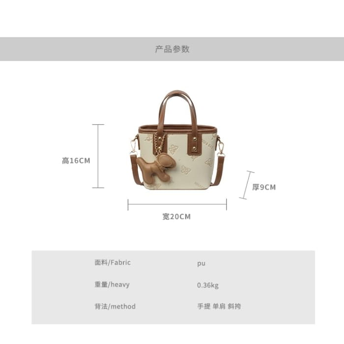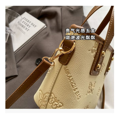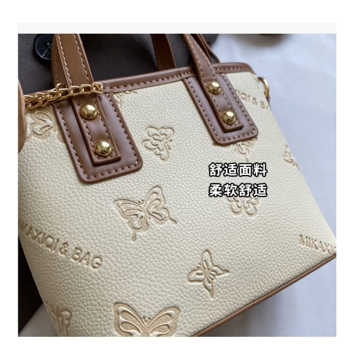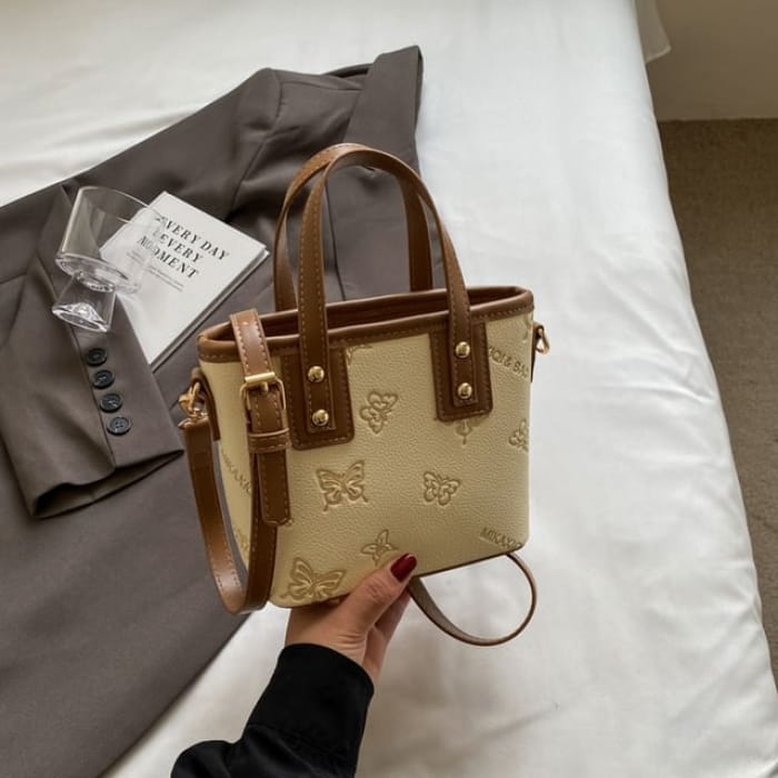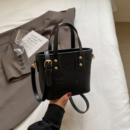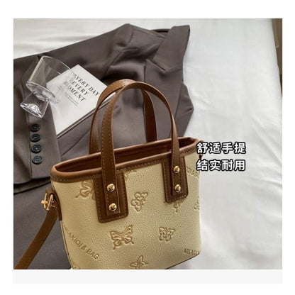Umhängetasche aus Kunstleder mit Schmetterlings-Print / Taschenanhänger / Set