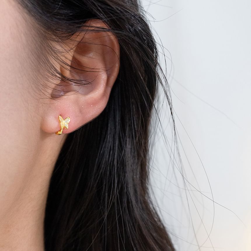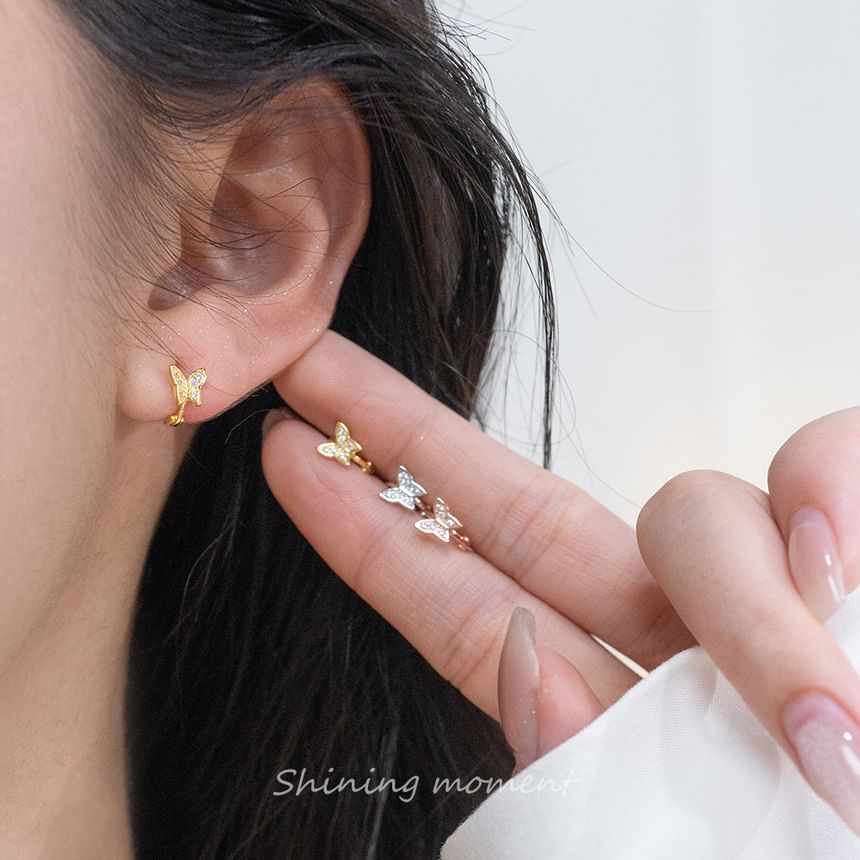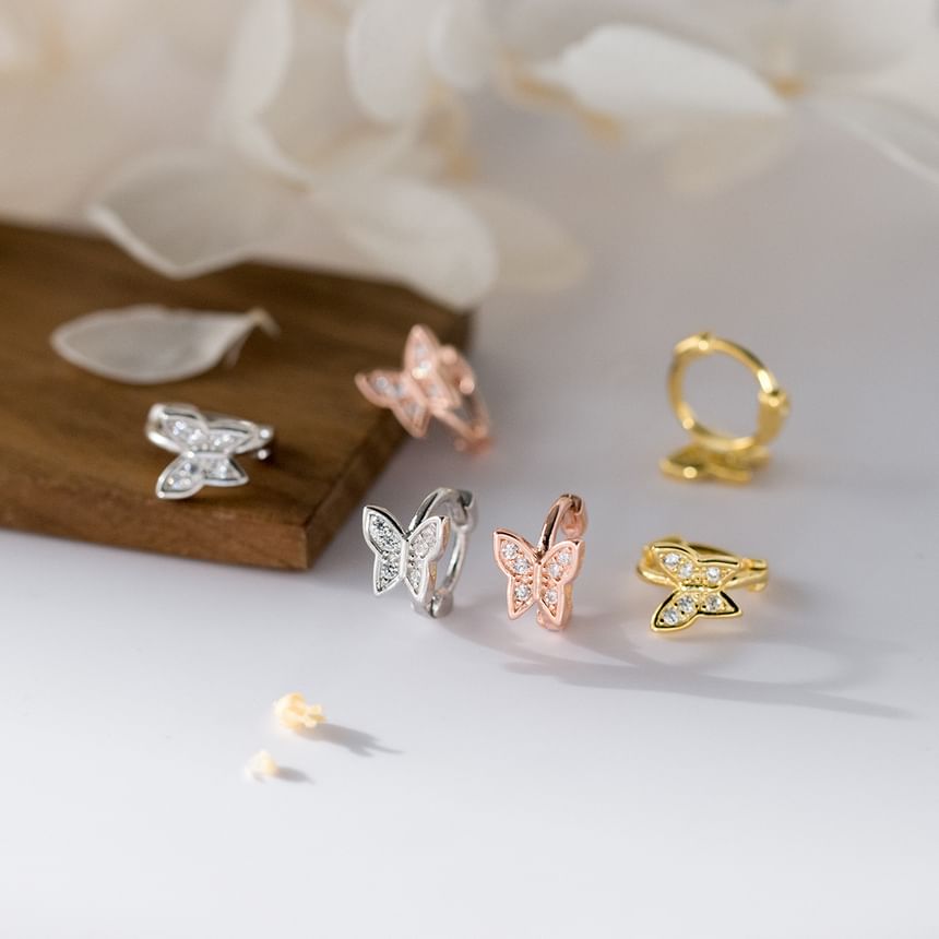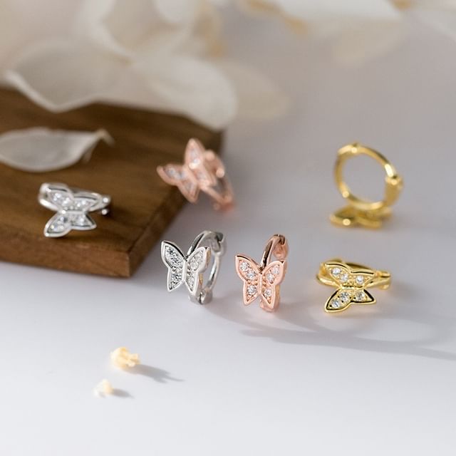 Butterfly Rhinestone Sterling Silver Huggie Earring