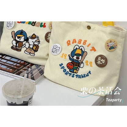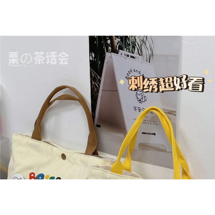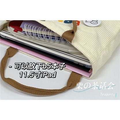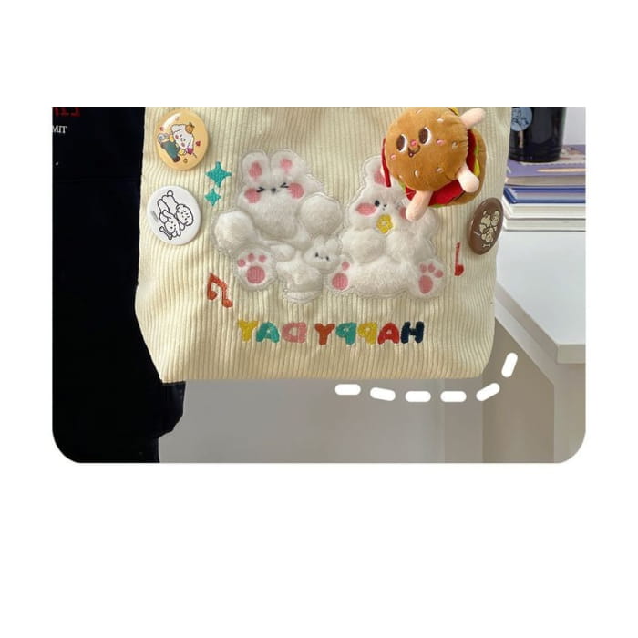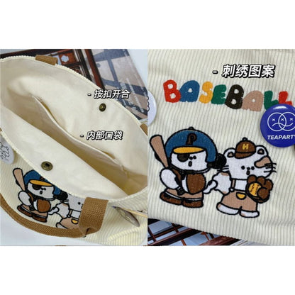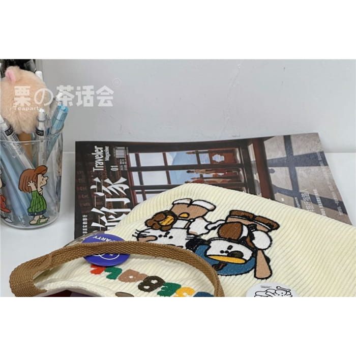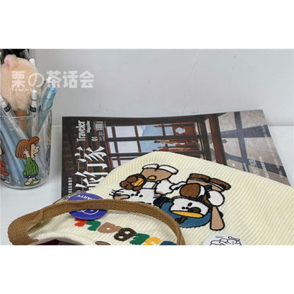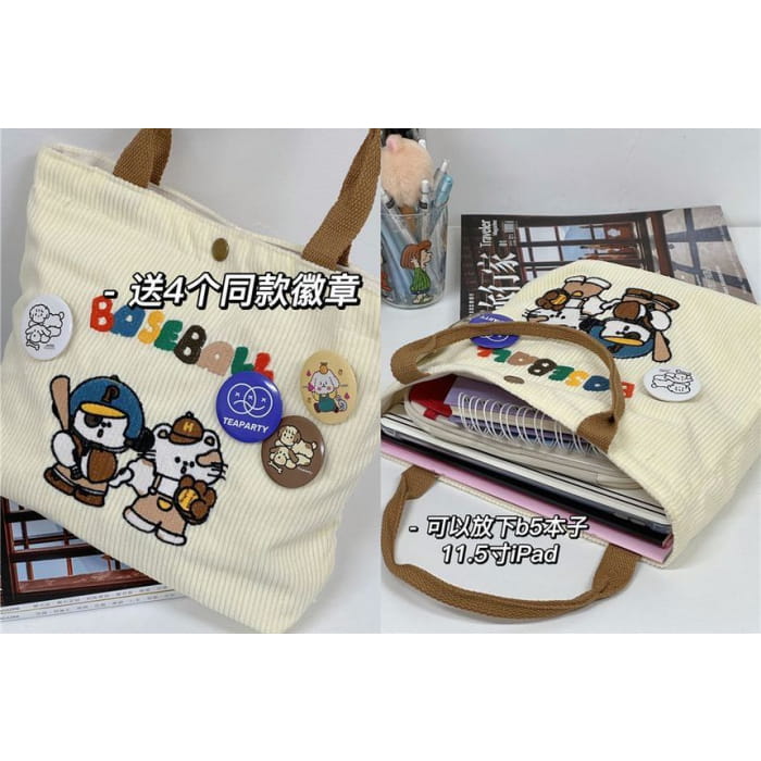Cartoon Embroidered Tote Bag / Bag Charm / Set