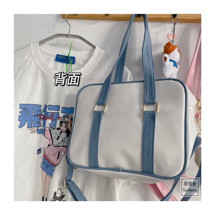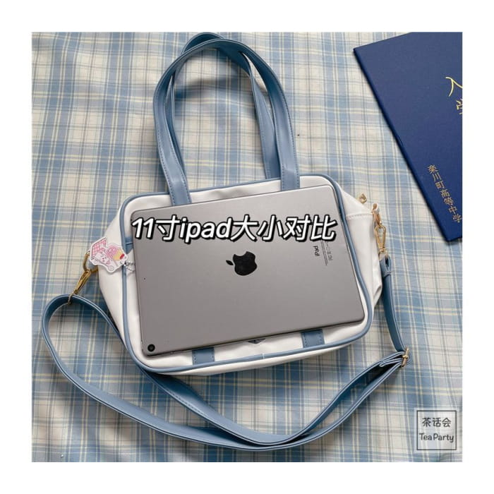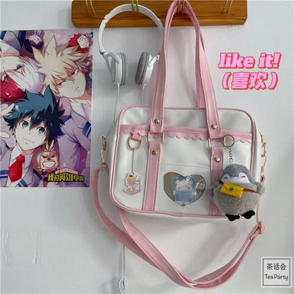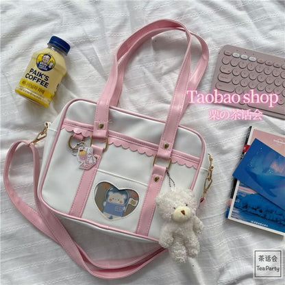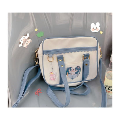 Cartoon Print Faux Leather Tote Bag / Bag Charm / Set