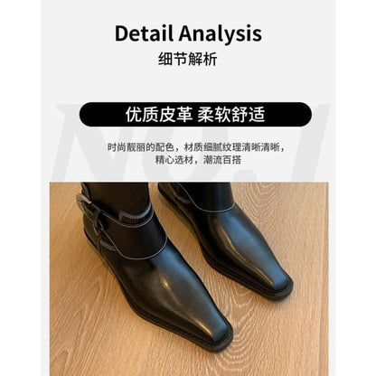 Stiefel mit kontrastierenden Nähten und Schnallen bis zur Mitte der Wade