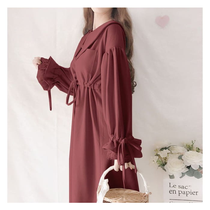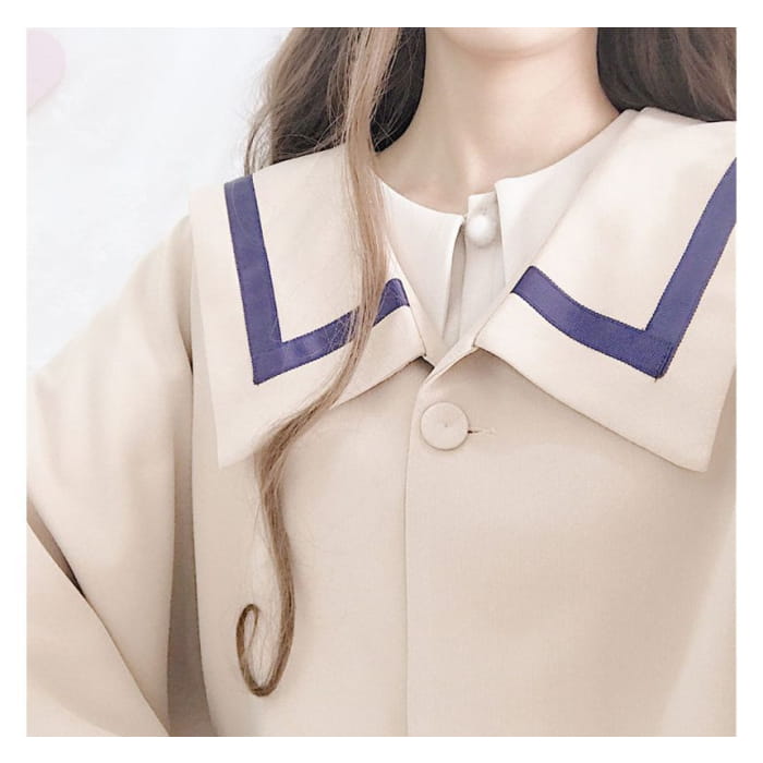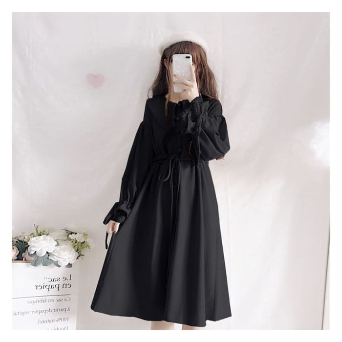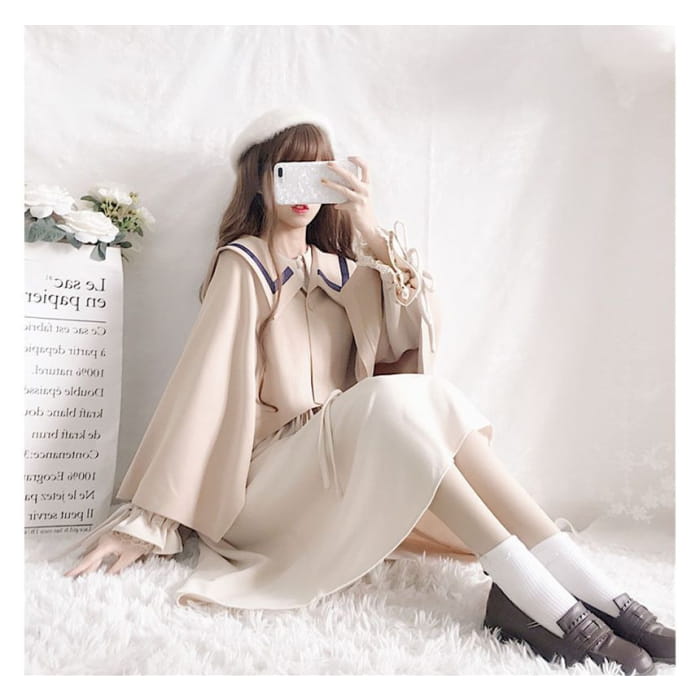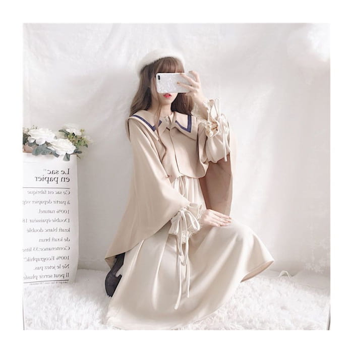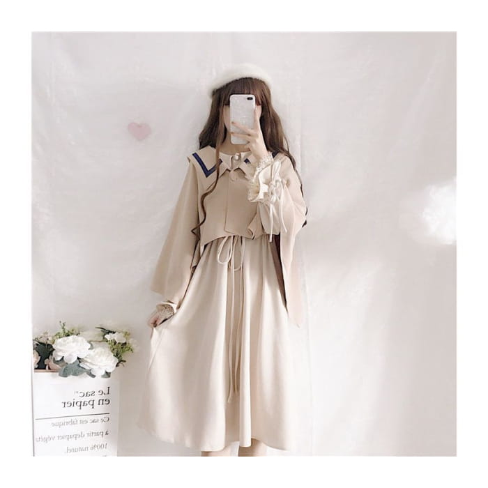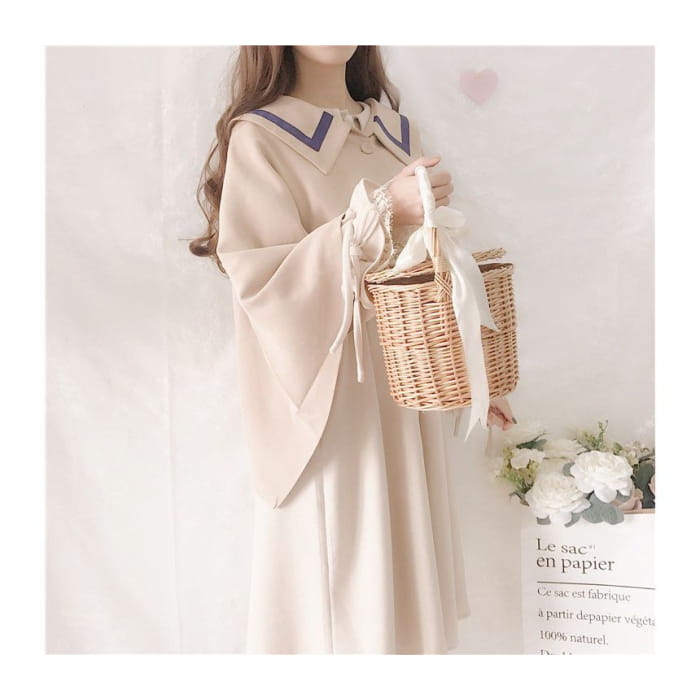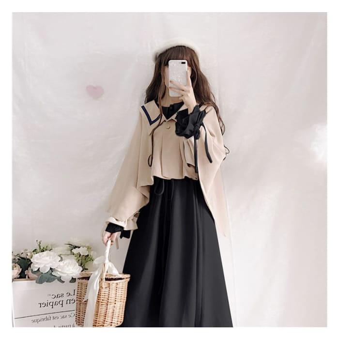 Cape mit Kontrastbesatz / Langärmliges, schlichtes Midikleid in A-Linie mit Kragen