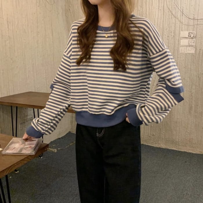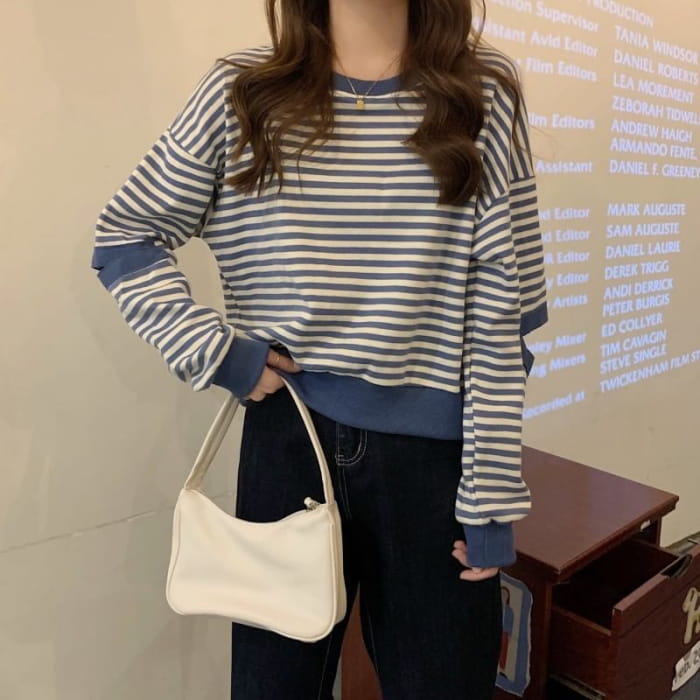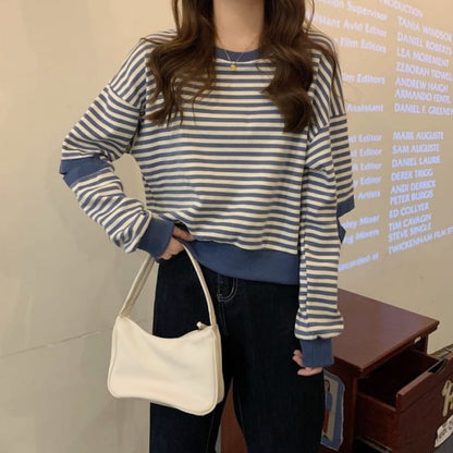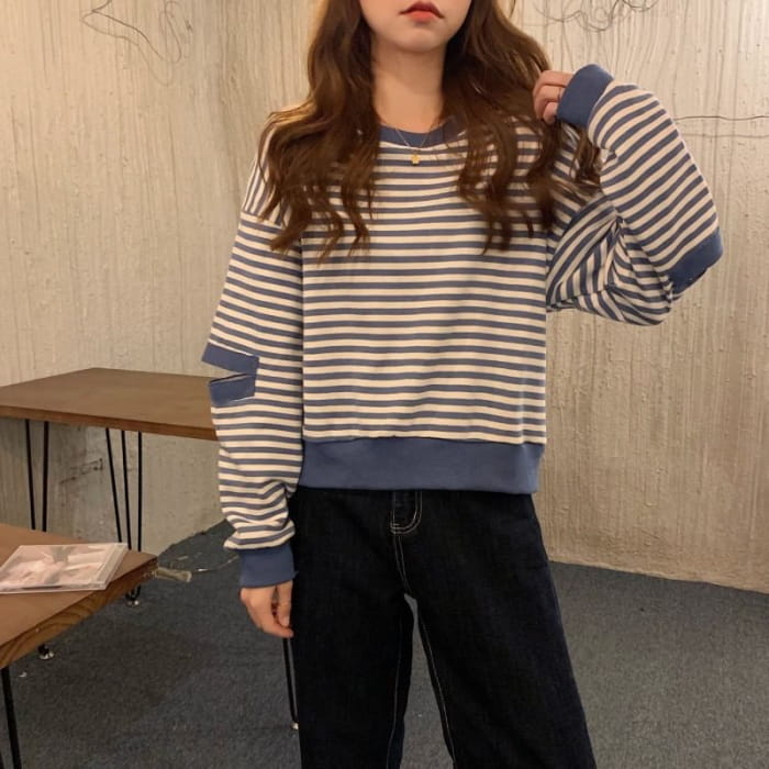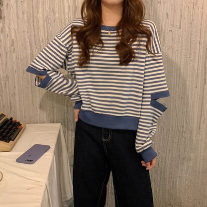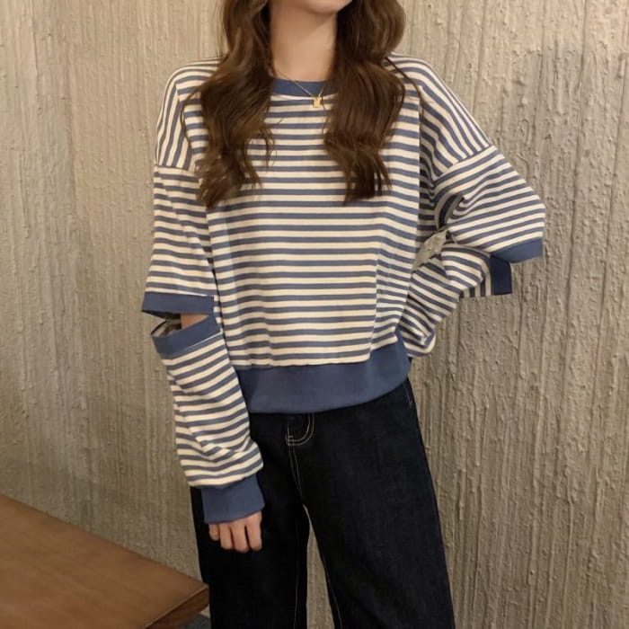 Crewneck Striped Cutout Pullover