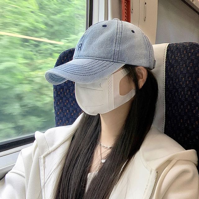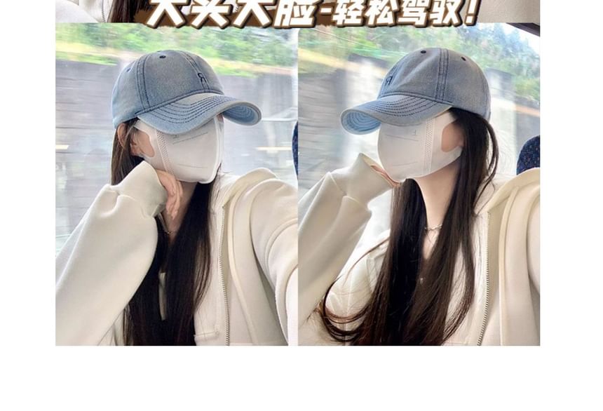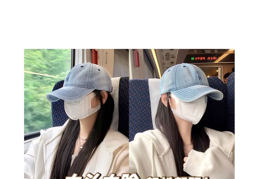 Lettering Embroidered Washed Denim Baseball Cap