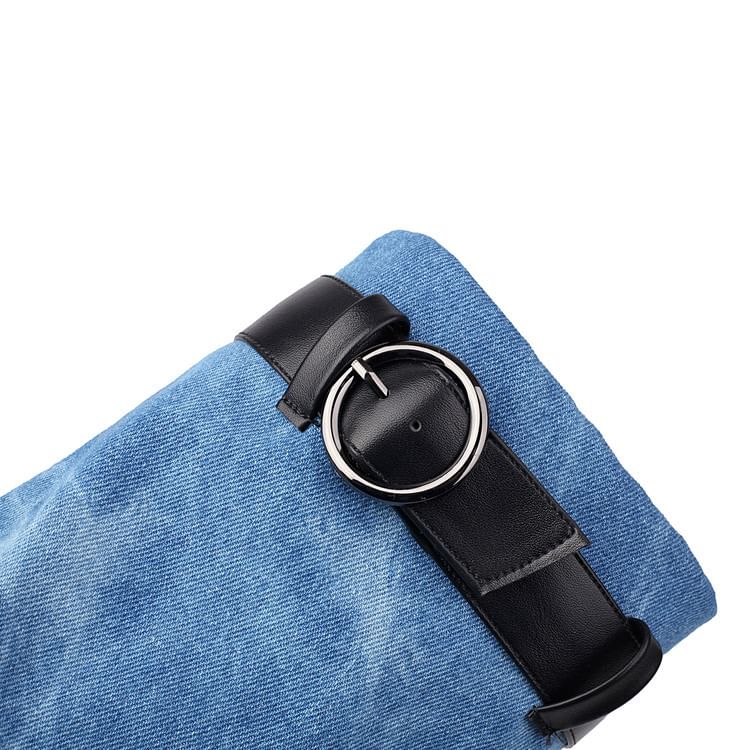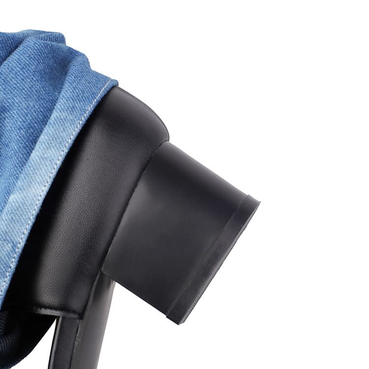 Block Heel Washed Denim Short Thong Boots