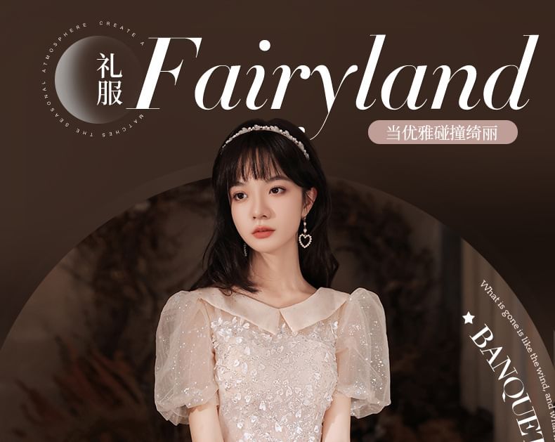 Designs) (Various Glitter Collared A-Line Evening Gown Short-Sleeve