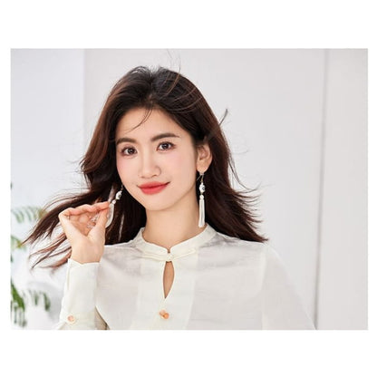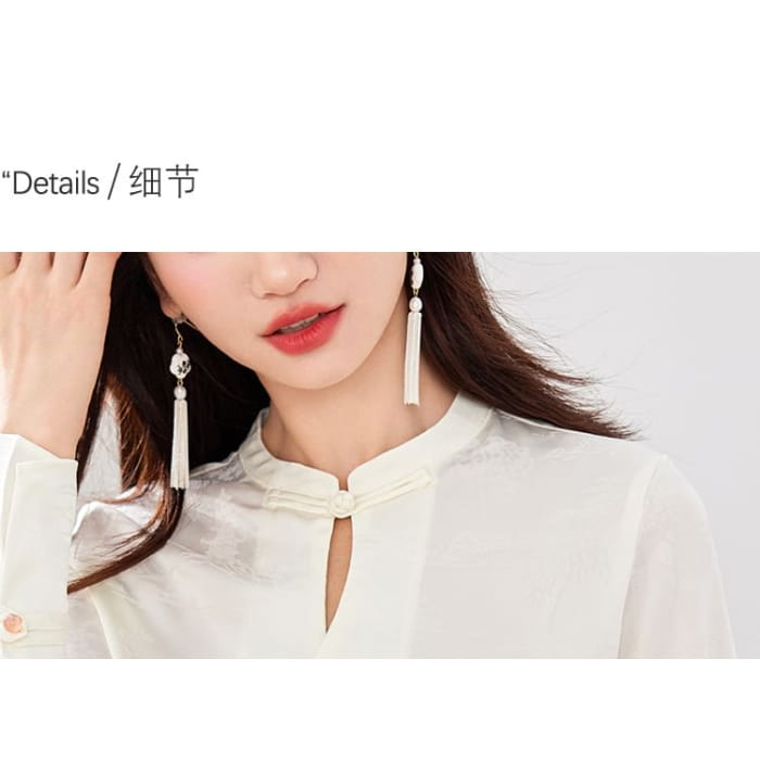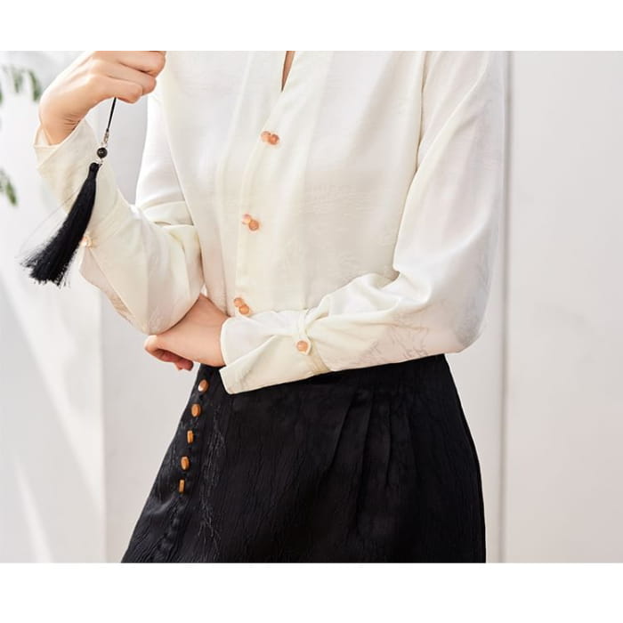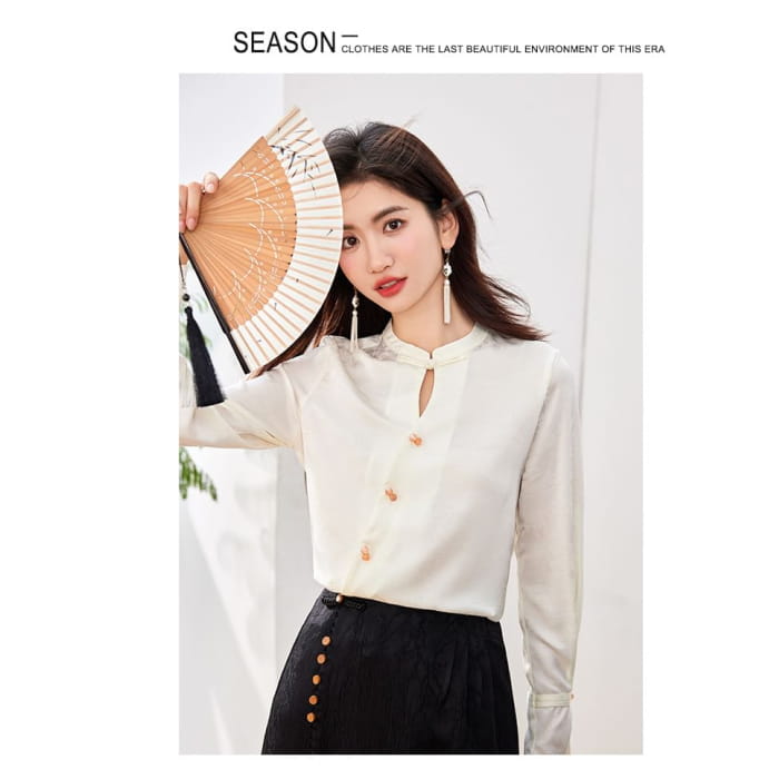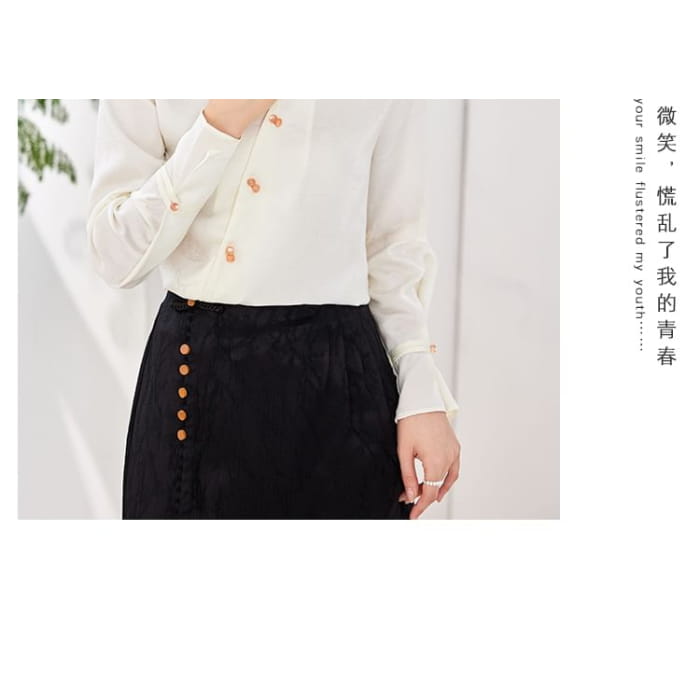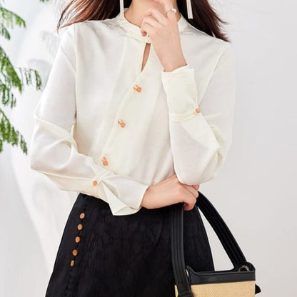 Bluse mit diagonalen Knöpfen und Cut-Outs