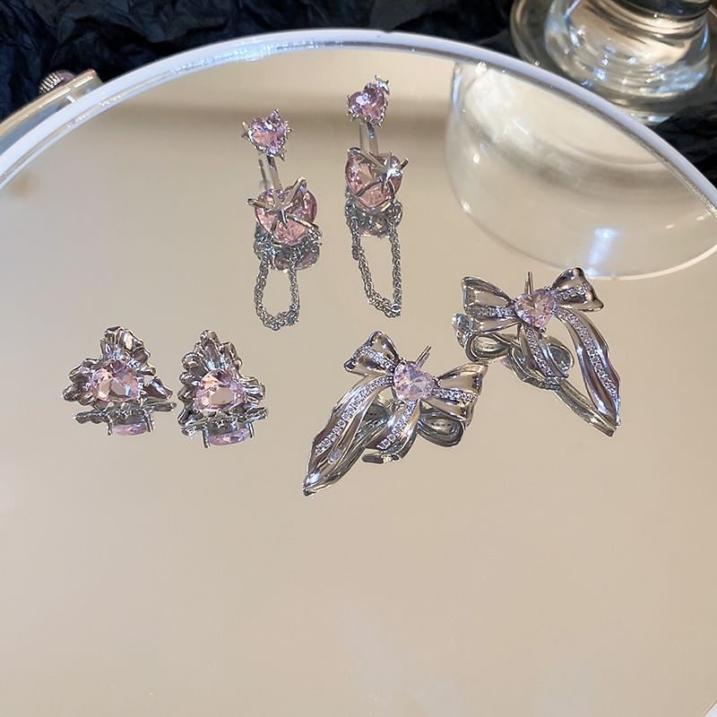 Bow / Heart Rhinestone Alloy Earring (various designs)