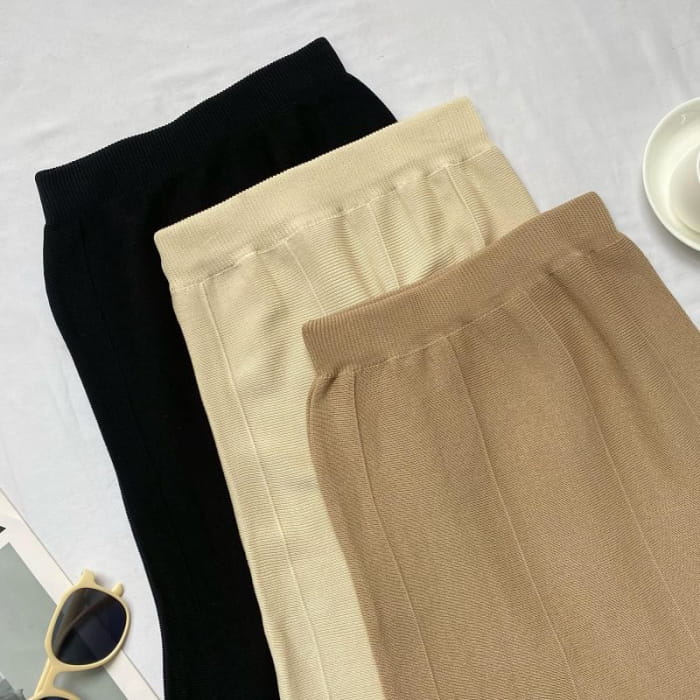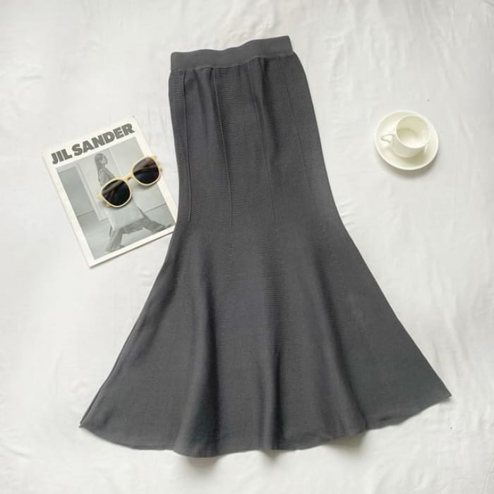 Schlichter Midi-Strickrock im Meerjungfrauen-Stil mit elastischer Taille