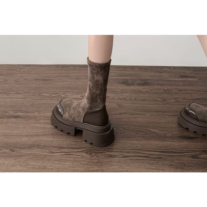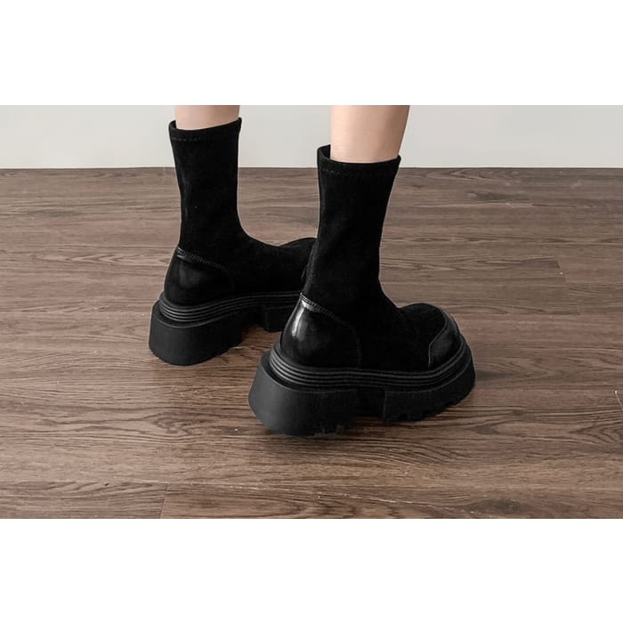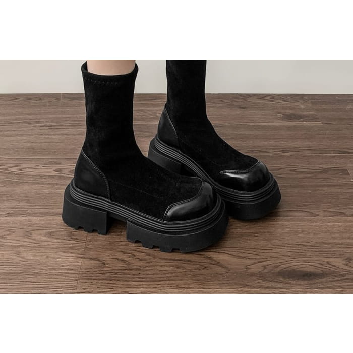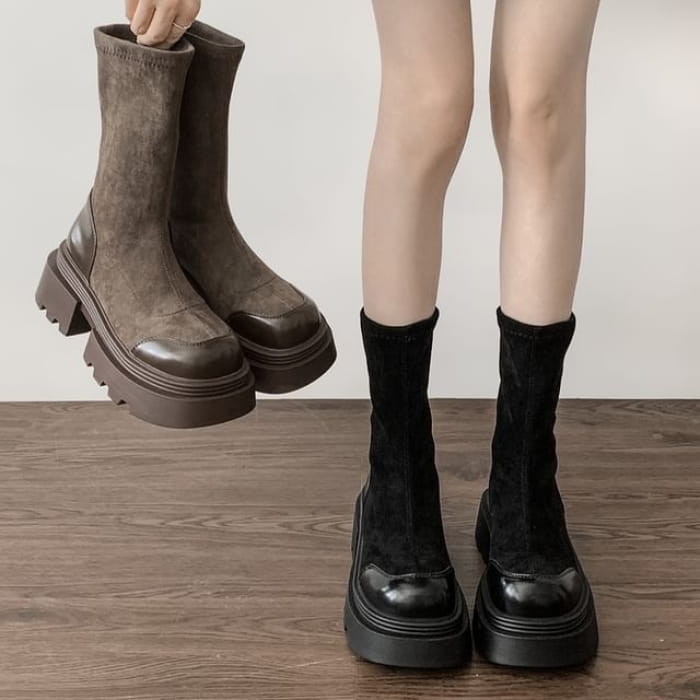 Stiefel aus Kunstleder mit Plateausohle und halbhoher Sohle