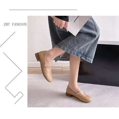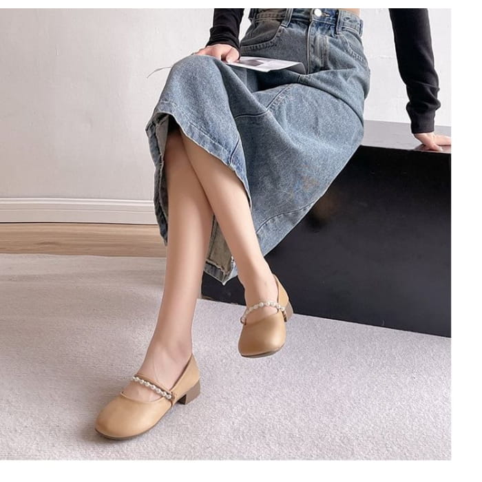 Mary-Jane-Schuhe mit dickem Absatz und Kunstperlen