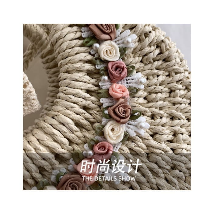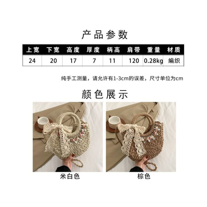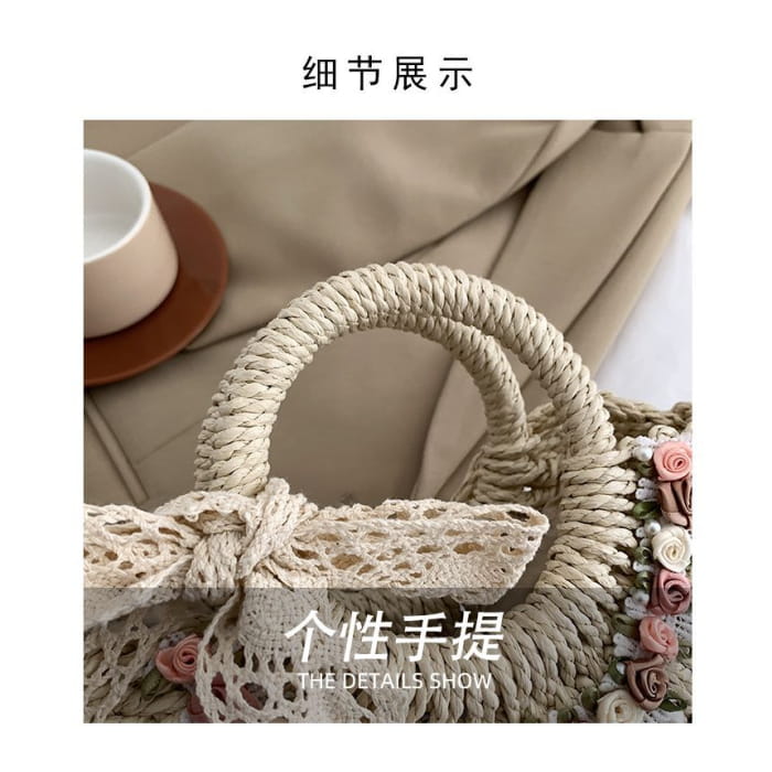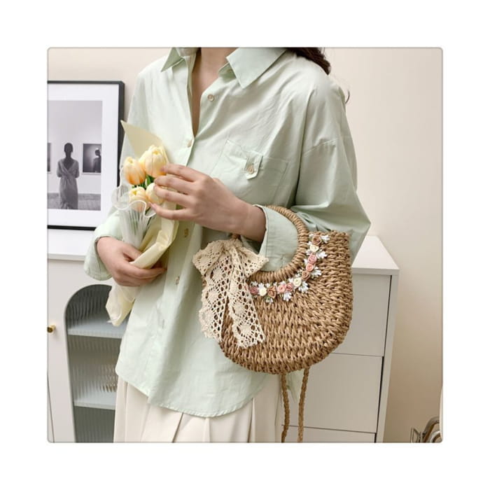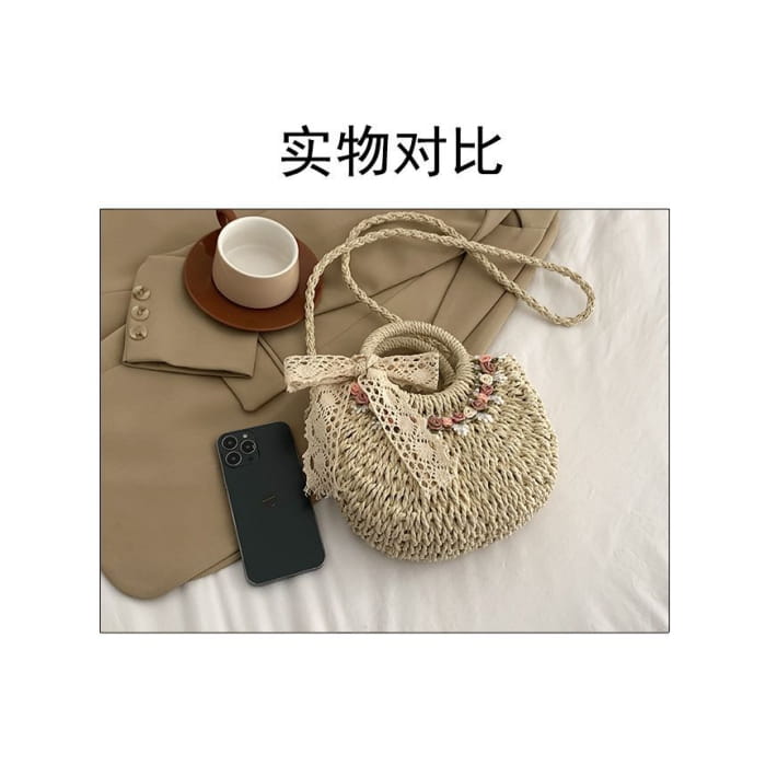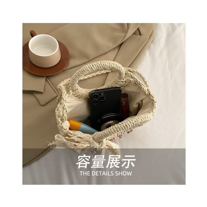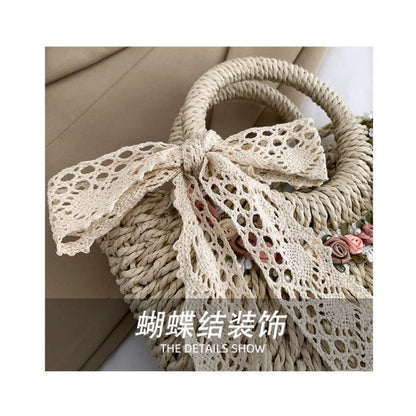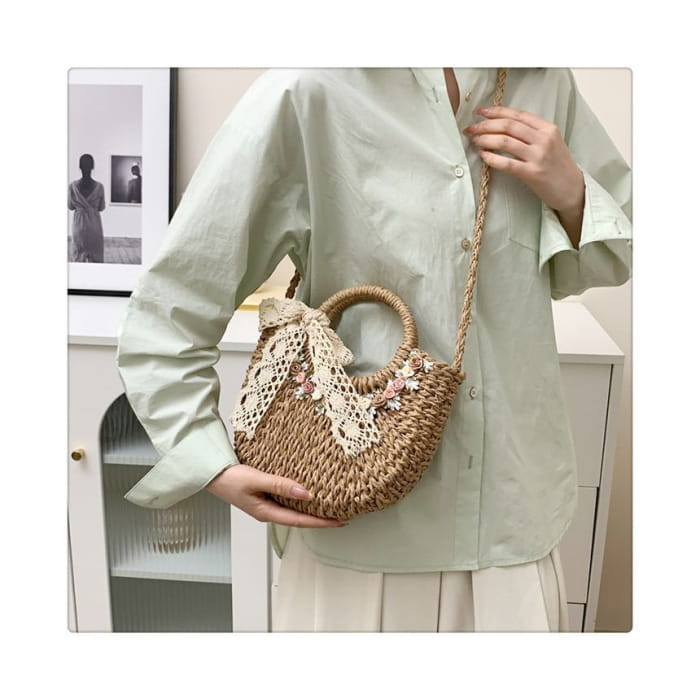 Umhängetasche mit floraler Spitzenschleife und Tragegriff oben