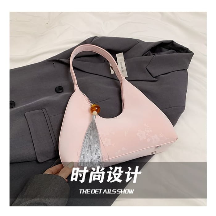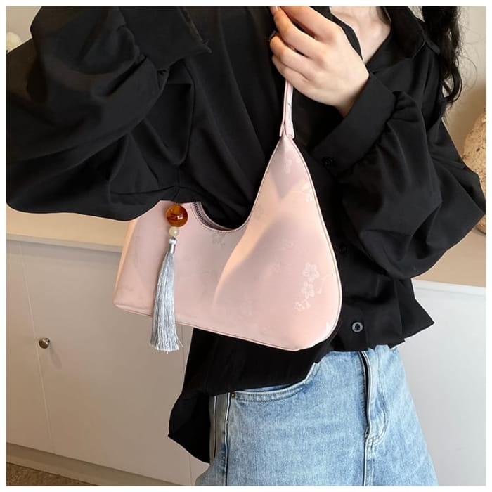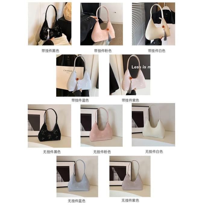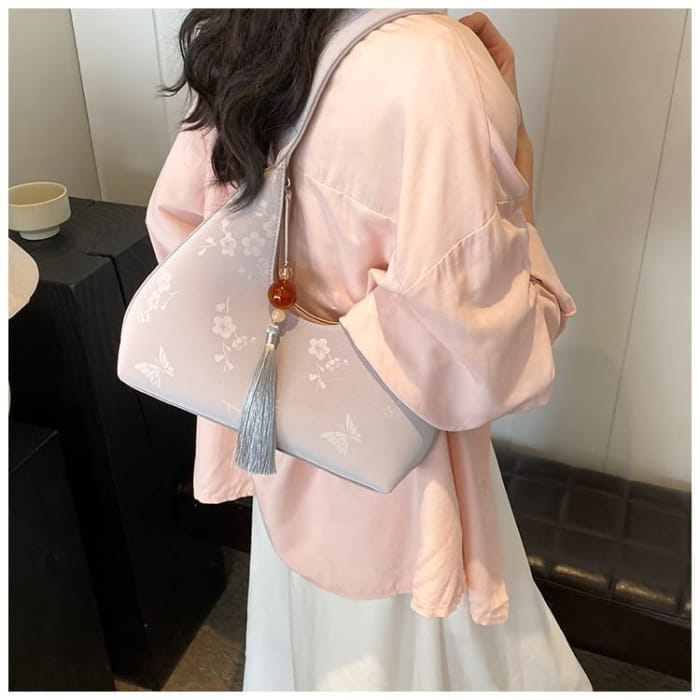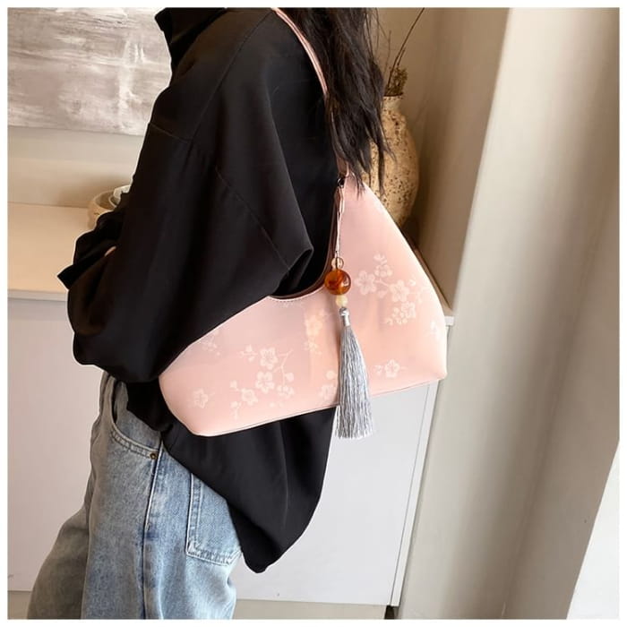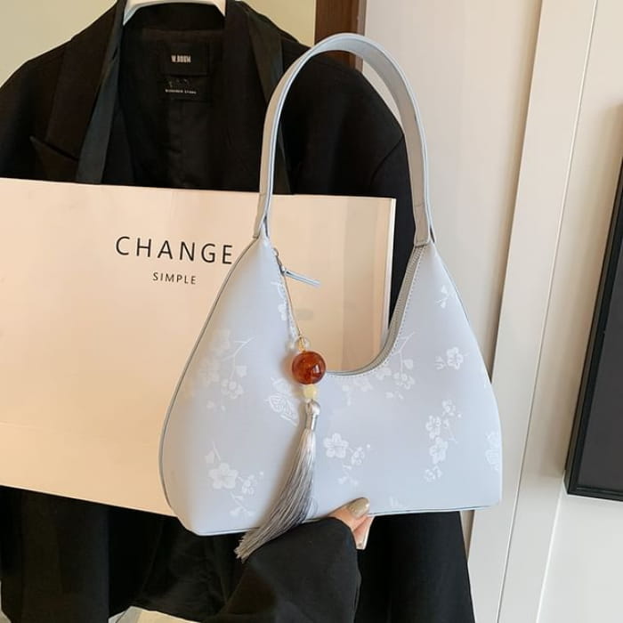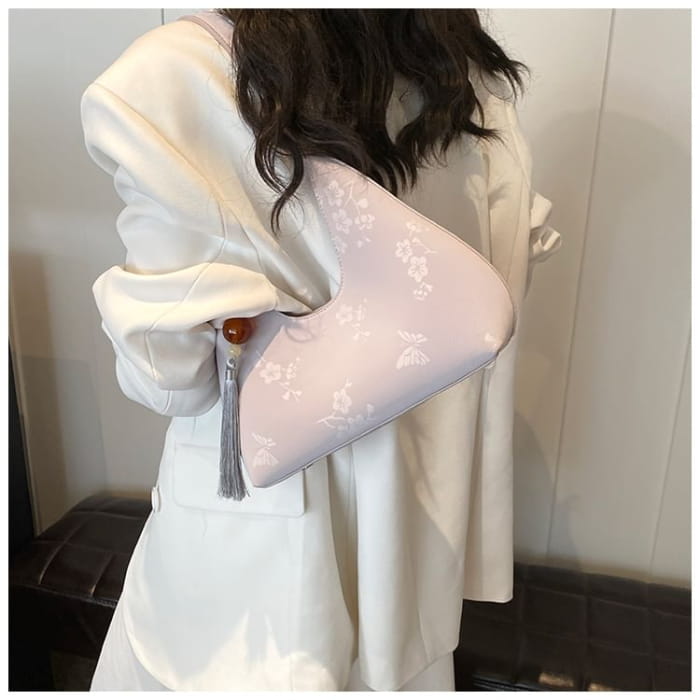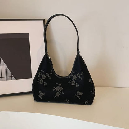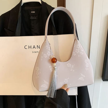 Umhängetasche / Taschenanhänger / Set aus Kunstleder mit Blumendruck