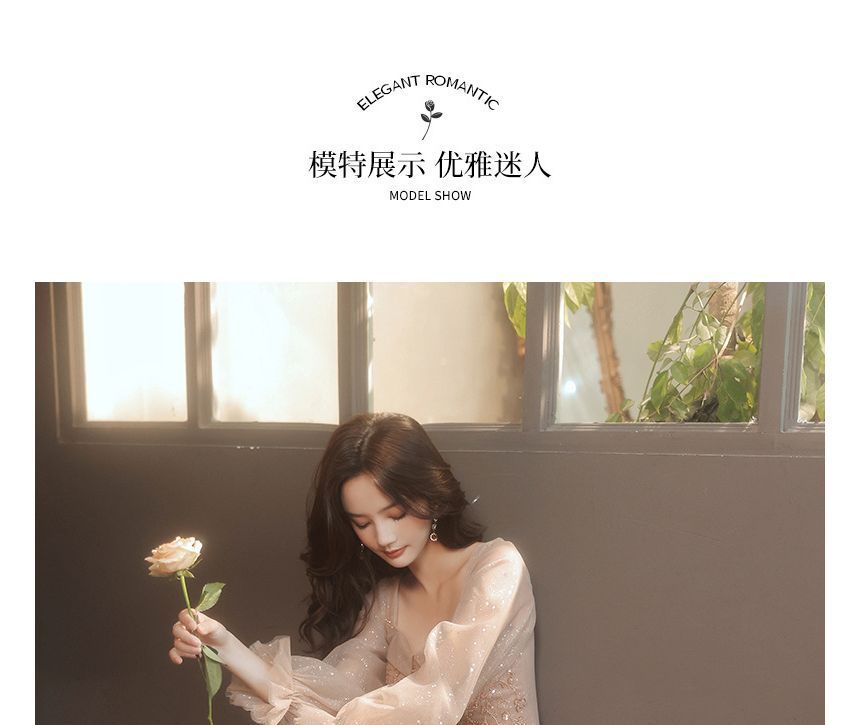 Glitter Mesh Neck (Various Dress Long-Sleeve Cocktail Designs) Embellished Square