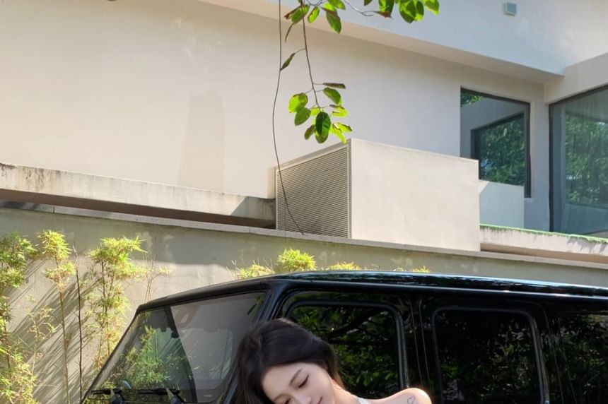/ Halter Crop A-Line Slim Tiered Top Elastic Waist Bow Plain Skirt Mini Fit