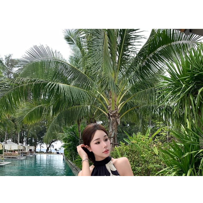 Neckholder-Maxi-Sommerkleid mit Blumenmuster