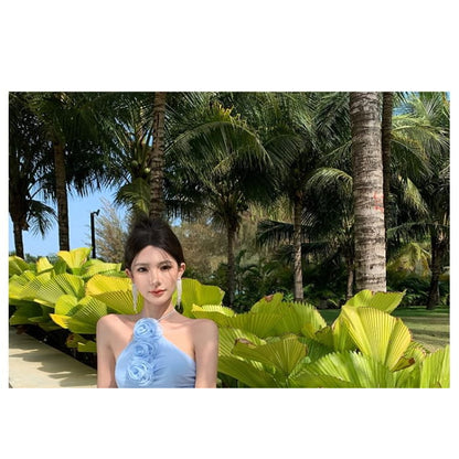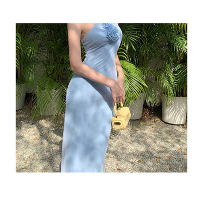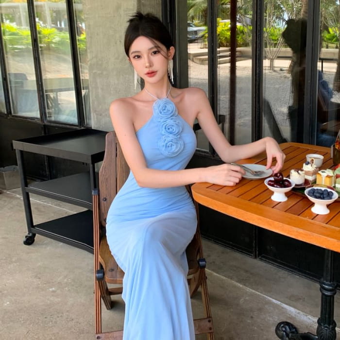 Neckholder-Maxi-Etuikleid mit Blumenakzent