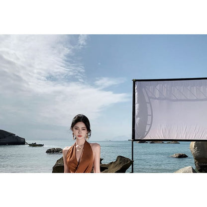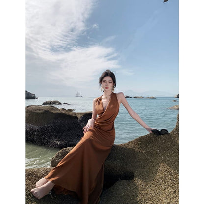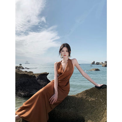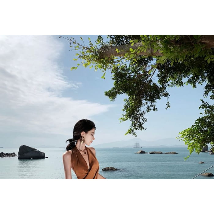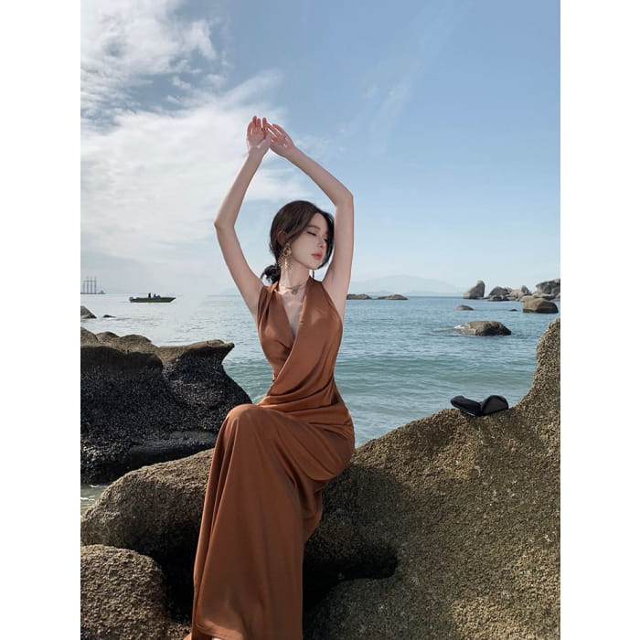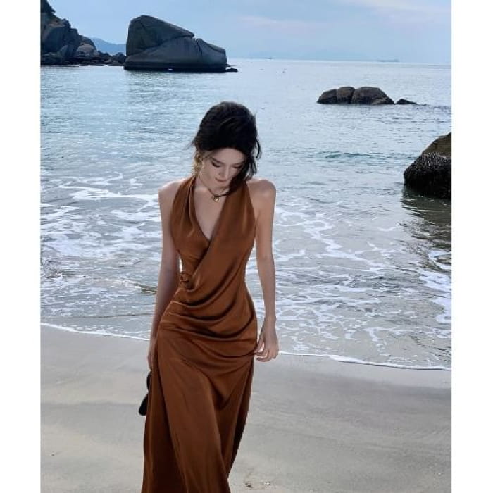 Neckholder-Midikleid mit Raffung und Figurbetontem Schnitt
