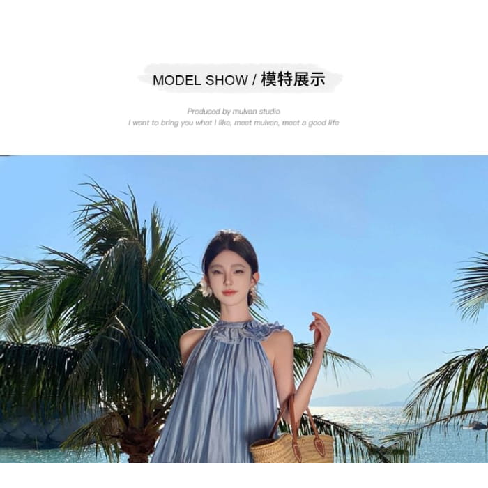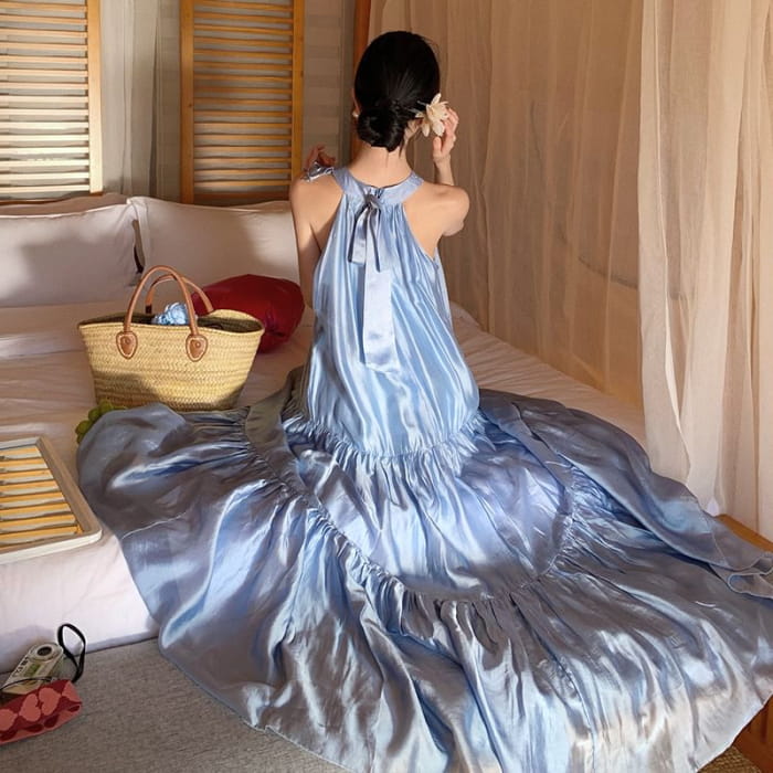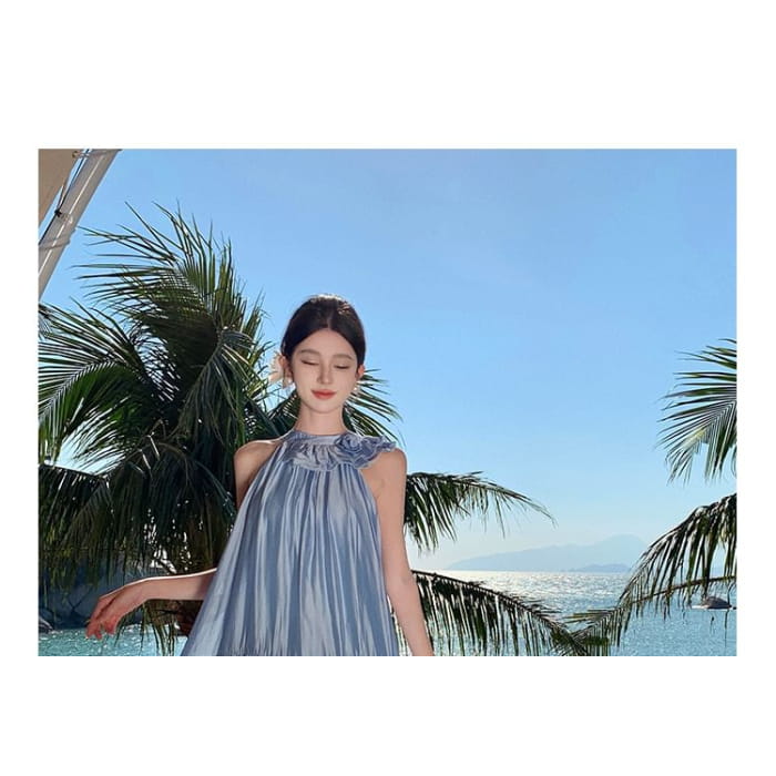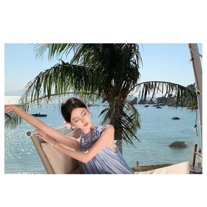 Neckholder, einfarbig, abgestuft, mit Blumen-Akzent, Maxi