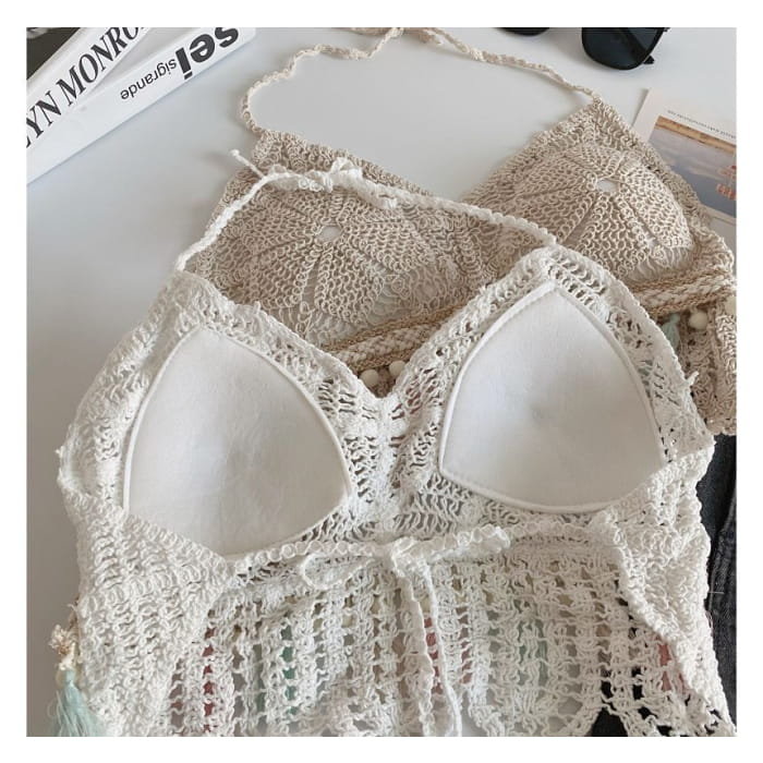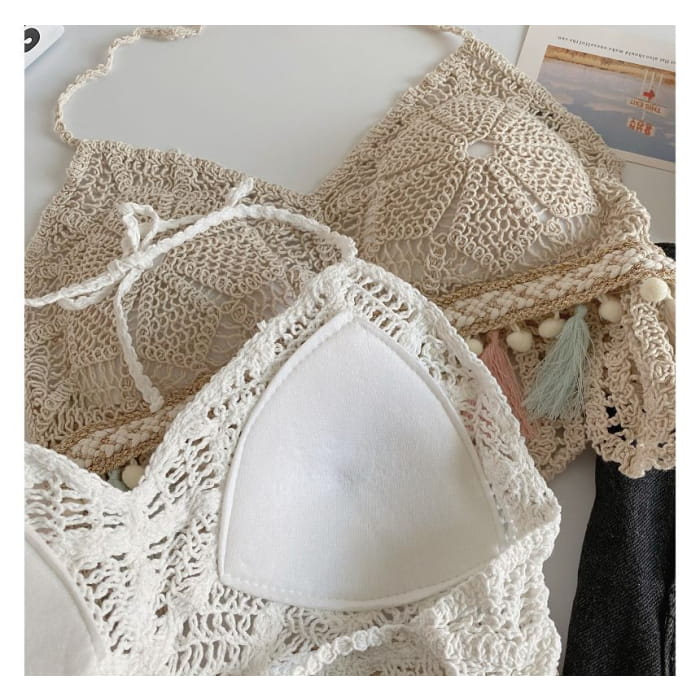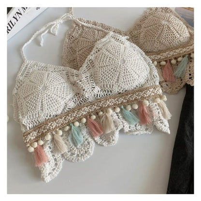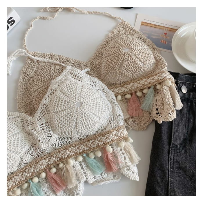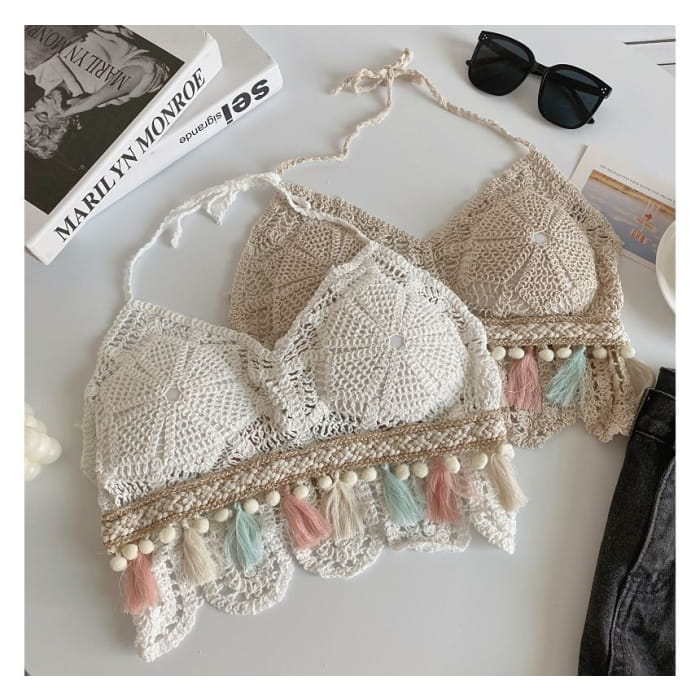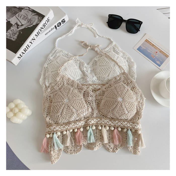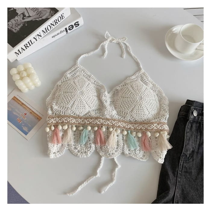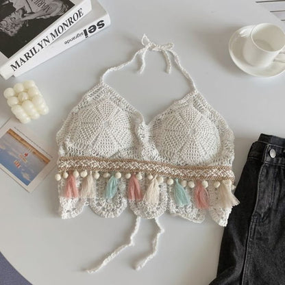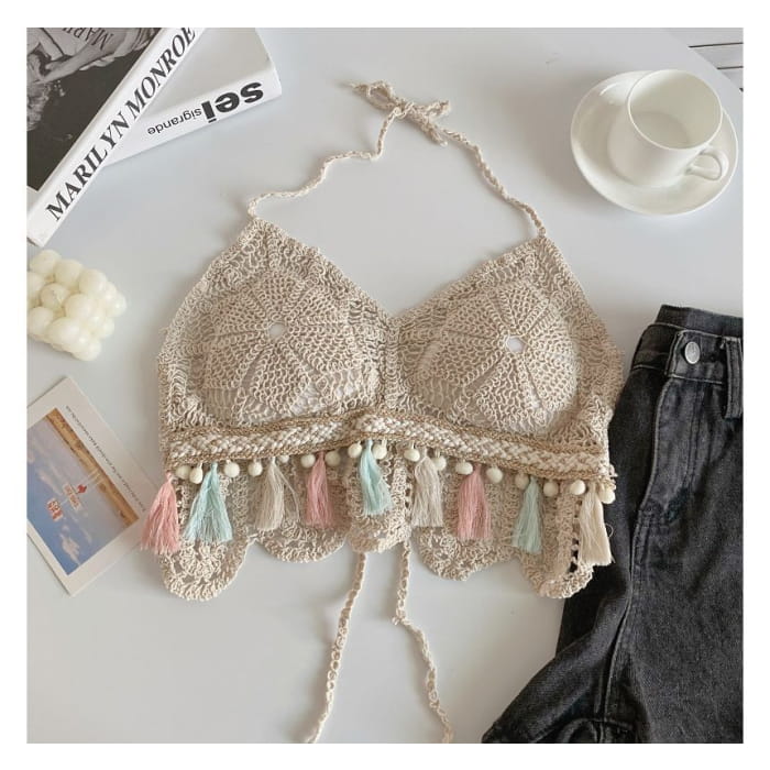 Neckholder-Bralette aus Häkelstrick mit Quasten