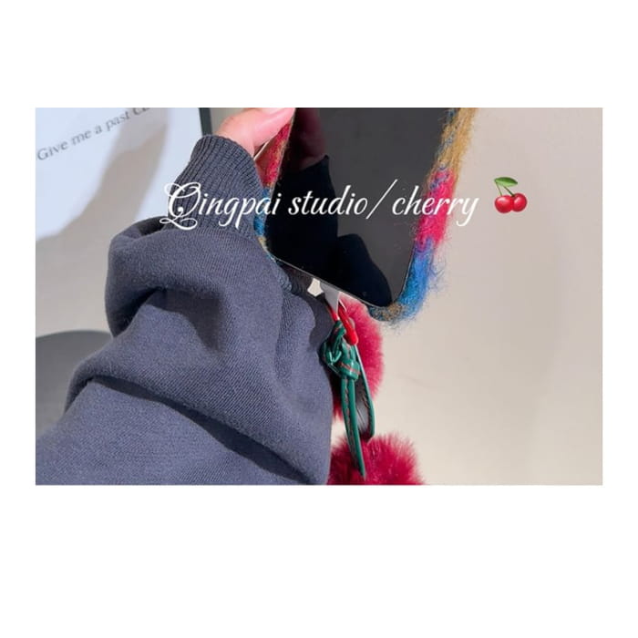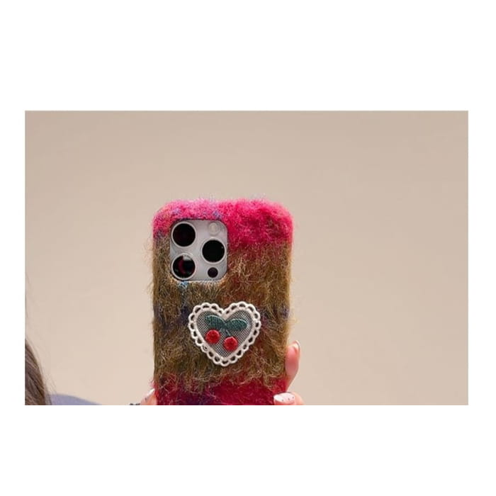 Handyhülle / Charm / Set aus Chenille mit Herz-Kirsch-Stickerei - iPhone 16 Pro Max / 16 Pro / 16 Plus / 16 / 15 Pro Max / 15 Pro / 15 Plus / 15 / 14 Pro Max / 14 Pro / 14 Plus / 14 / 13 Pro Max / 13 Pro / 13 / 13 Mini