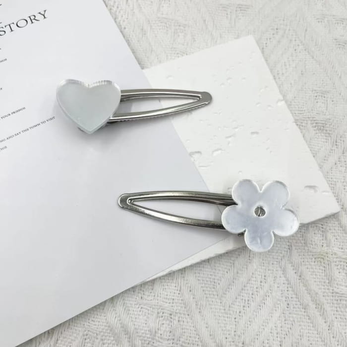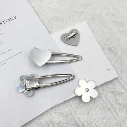 Haarspange aus verspiegelter Legierung mit Herz-/Blumenmotiv (verschiedene Designs)