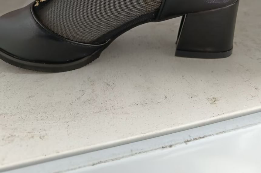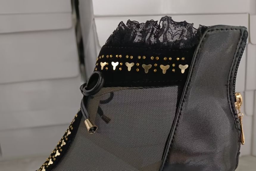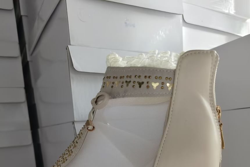 Pointed Lace Trim Mesh Panel Chunky Heel Ankle Boots