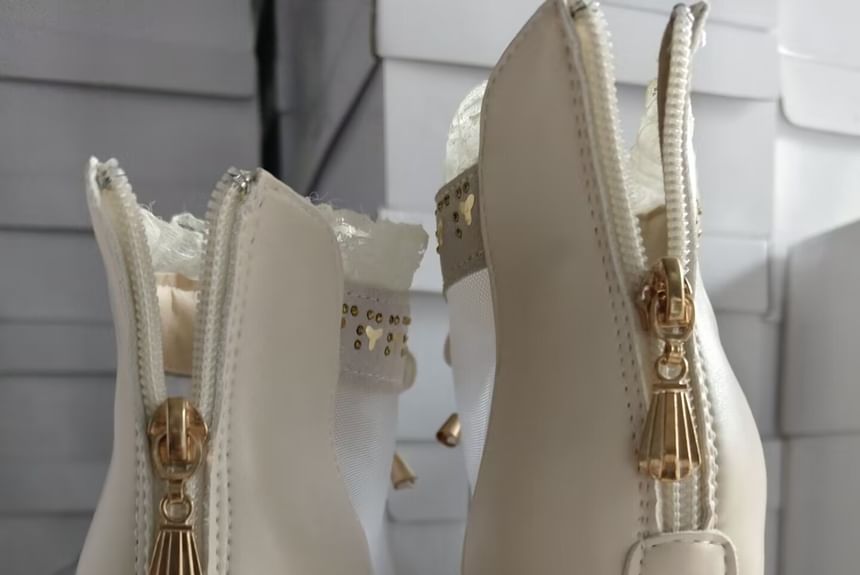 Heel Lace Boots Ankle Mesh Pointed Panel Trim Chunky