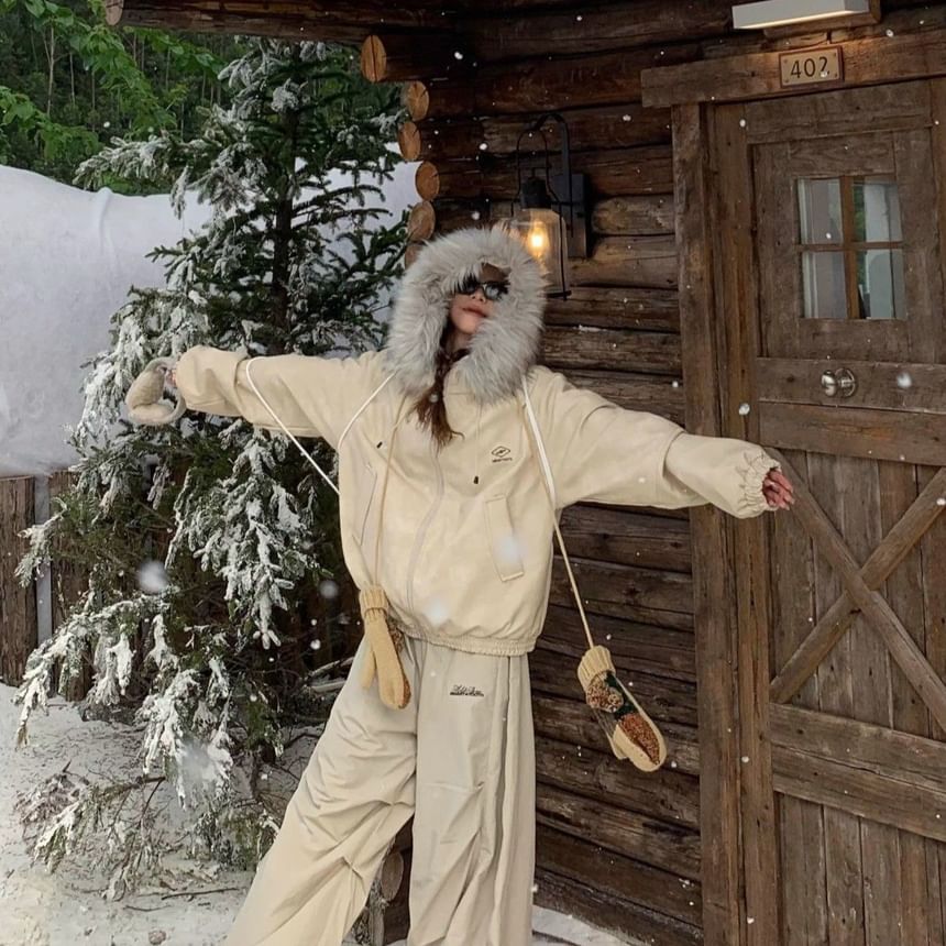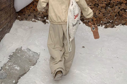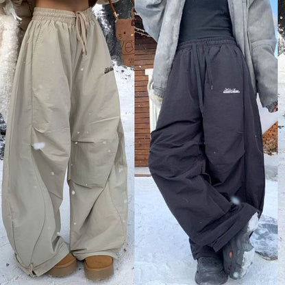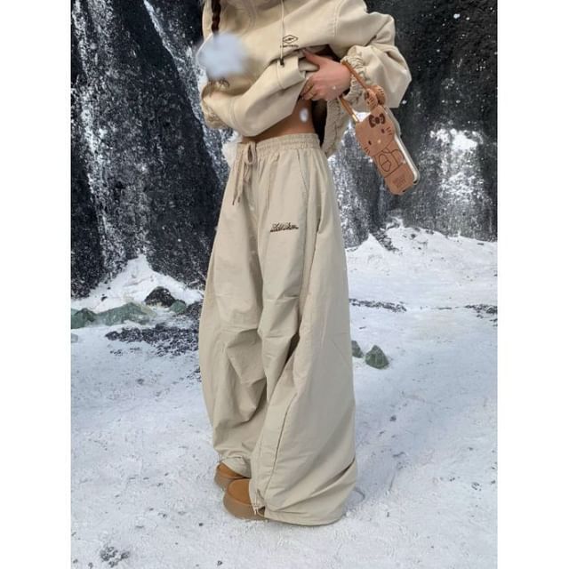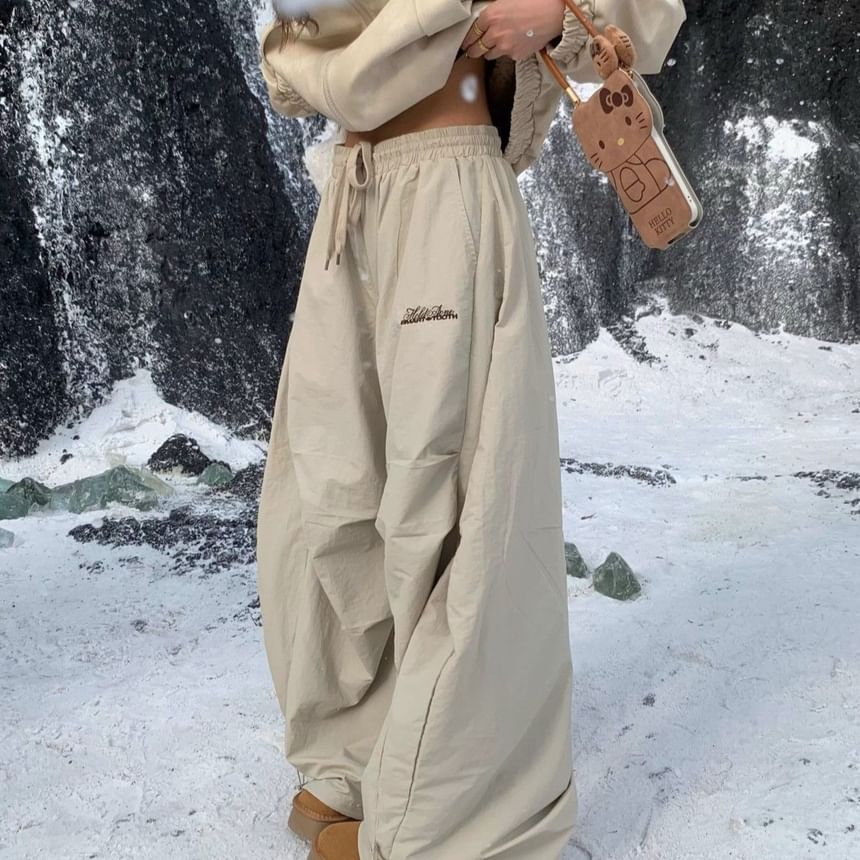 High Rise Lettering Print Loose-Fit Wide-Leg Sweatpants