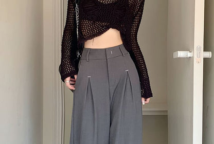 High Rise Plain Loose-Fit Wide-Leg Pants