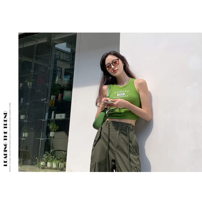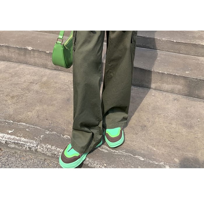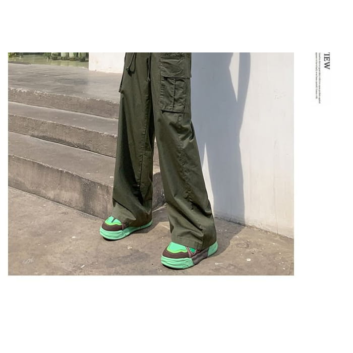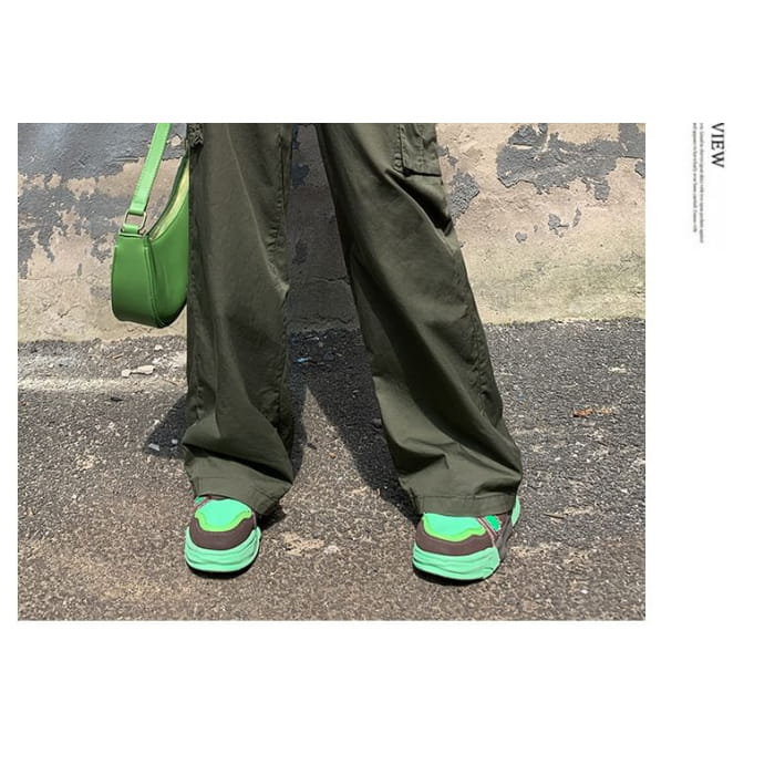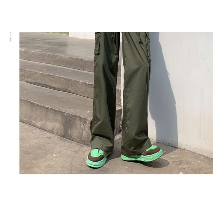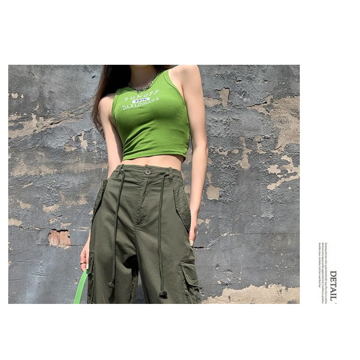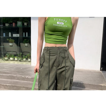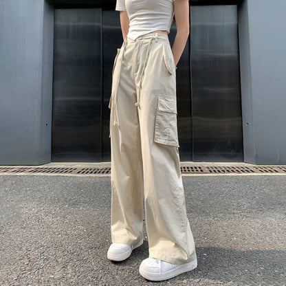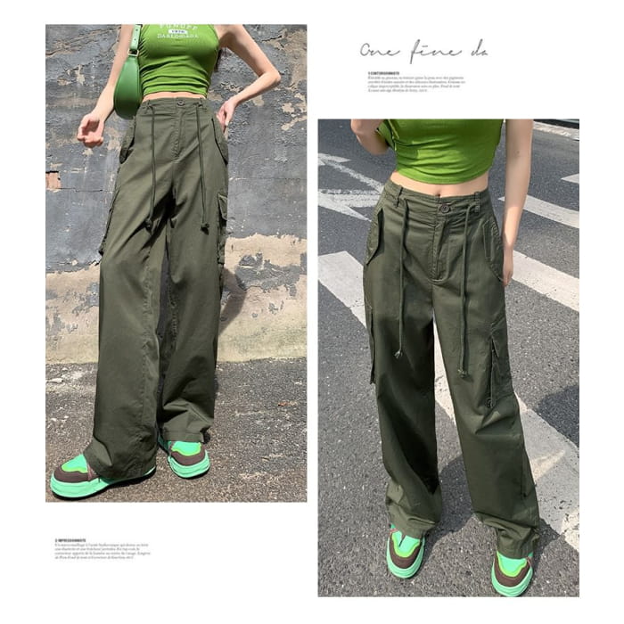 Hochgeschnittene, schlichte Cargohose mit weitem Bein