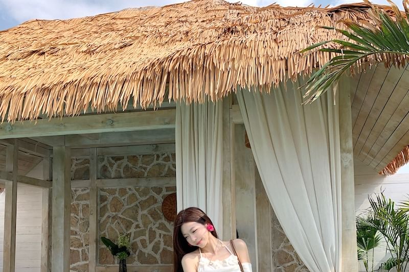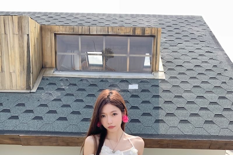 Mock Two-Piece Long-Sleeve Plain Top / High Rise Maxi A-Line Skirt