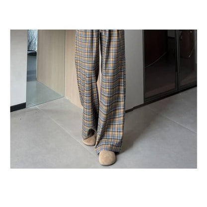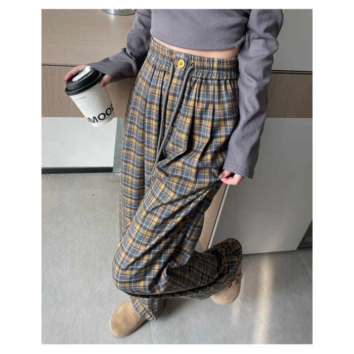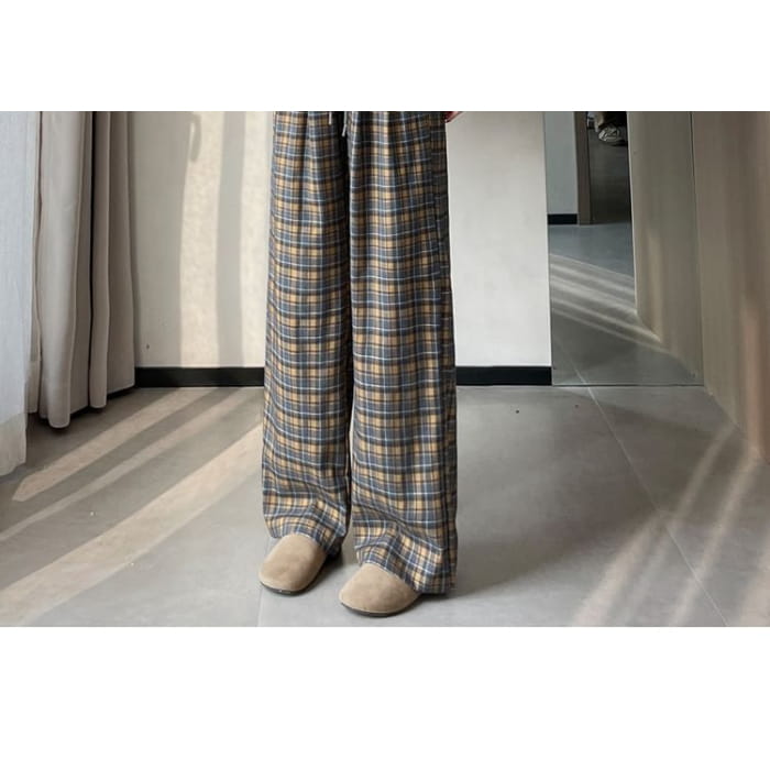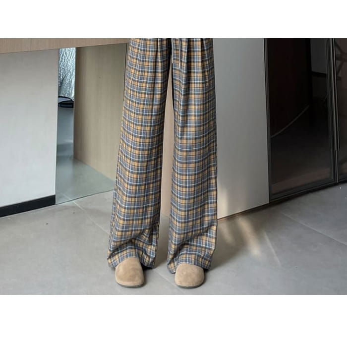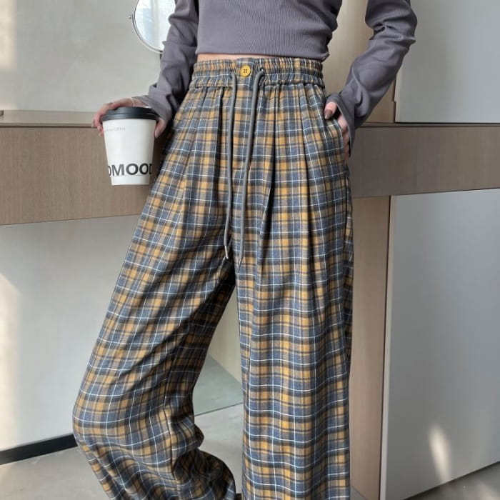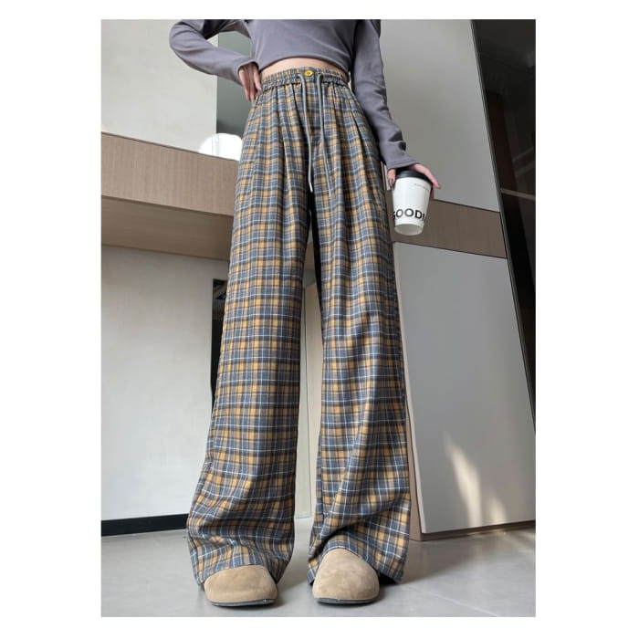 Karierte Hose mit weitem Bein und hoher Taille (verschiedene Designs)