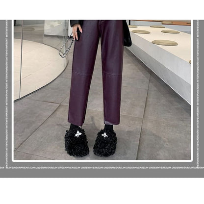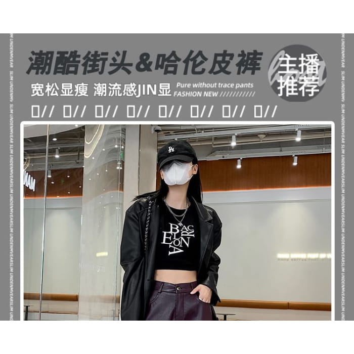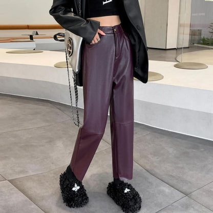 Schlichte verkürzte Karottenhose aus Kunstleder mit hoher Taille