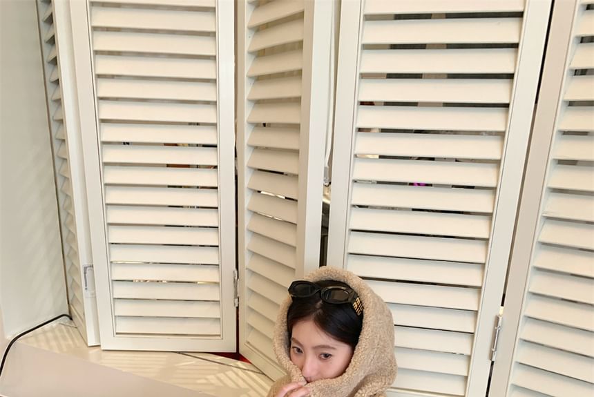 Hooded Plain Fleece Zip Up Jacket / Mid Waist Plaid Wide Leg Pants