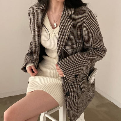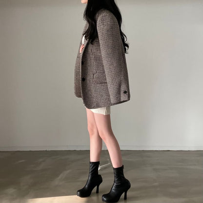 Houndstooth Single-Breasted Blazer