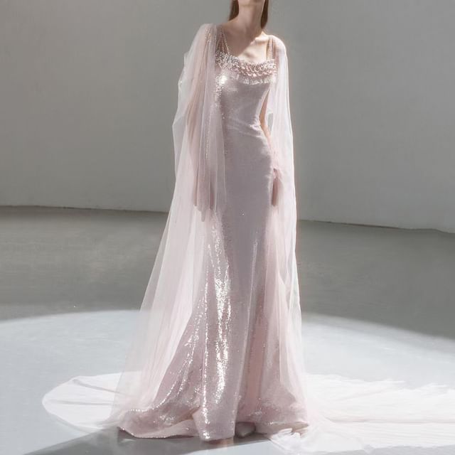 Lace Sheath Evening Trim Plain Spaghetti Gown Strap