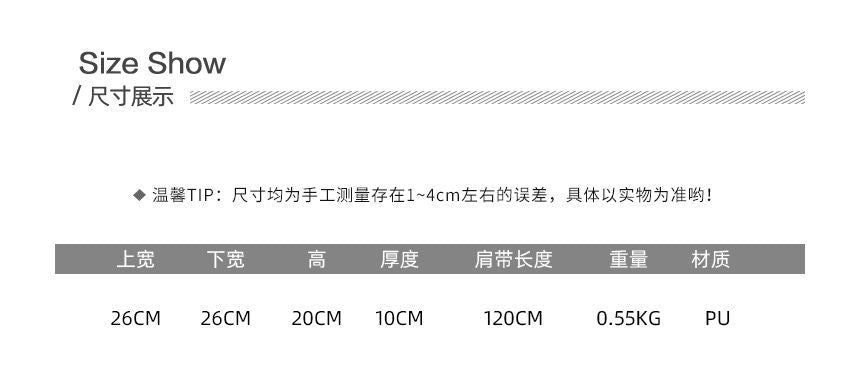 | Width | Height | Thickness | Strap Length |