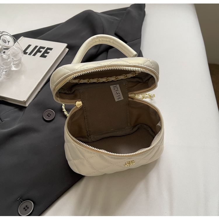 Chain Strap Plain Quilted Faux Leather Crossbody Bag