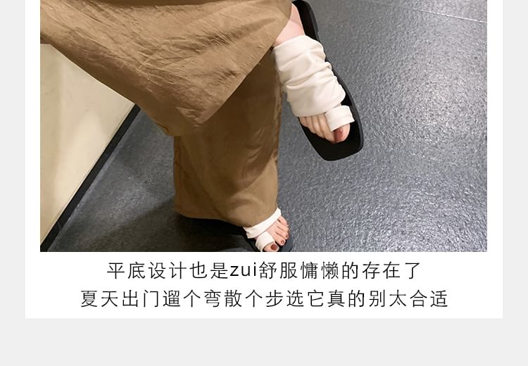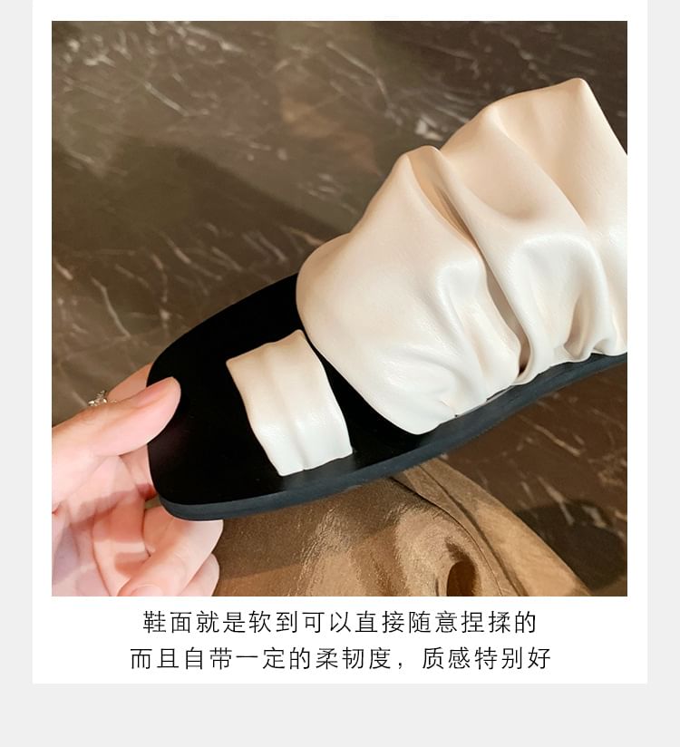Square Toe Ruched Faux Leather Toe Loop Slide Sandals