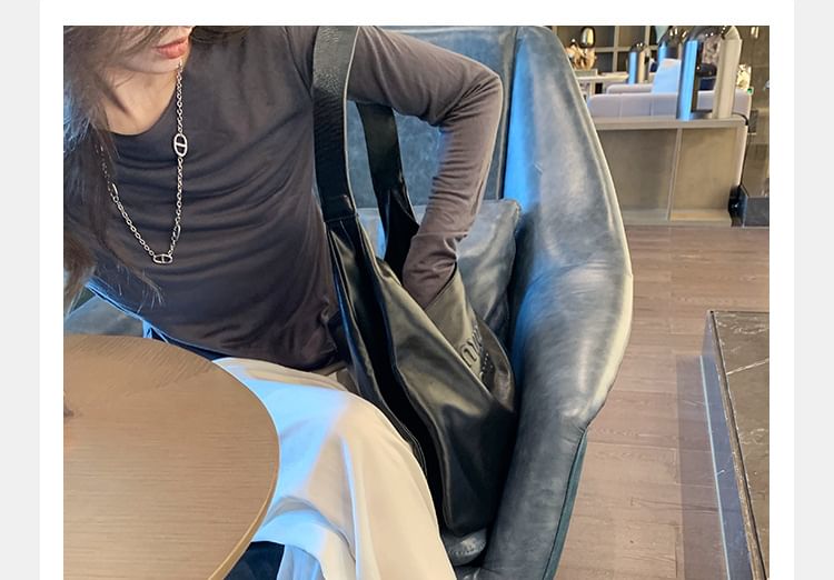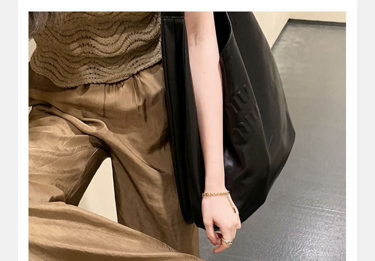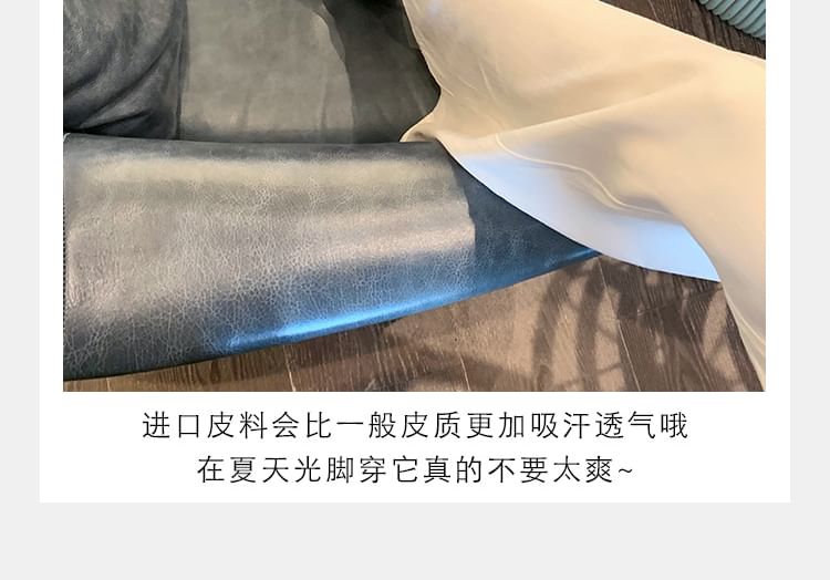 Leather Square Slide Sandals Ruched Faux Loop Toe