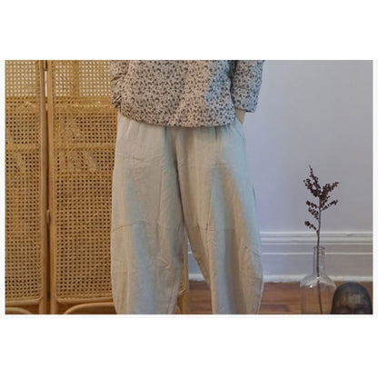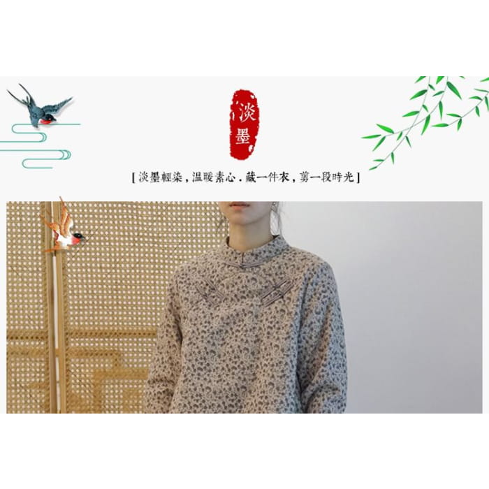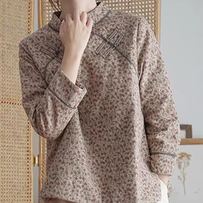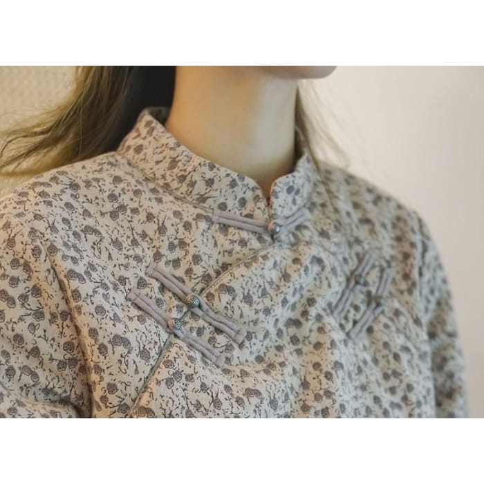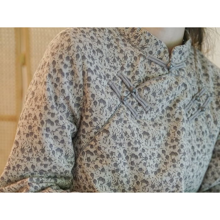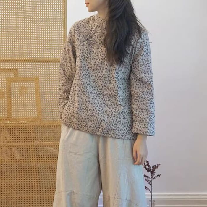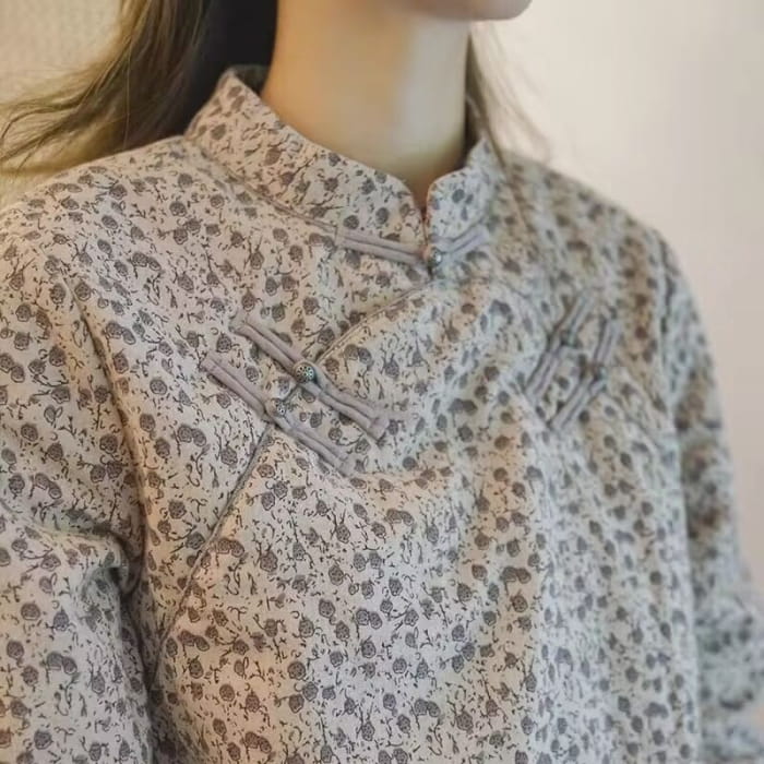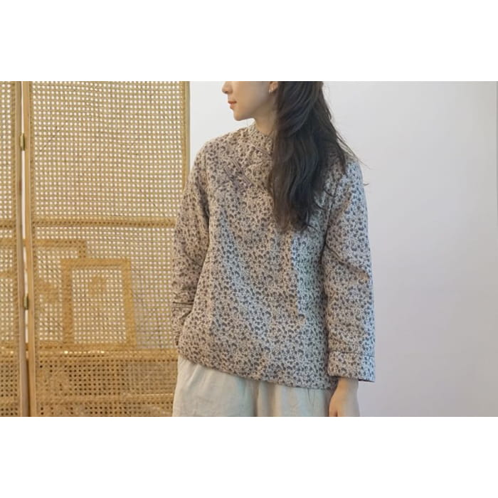 Langärmlige, schulterfreie Hanfu-Bluse mit Blumenmuster und Stehkragen
