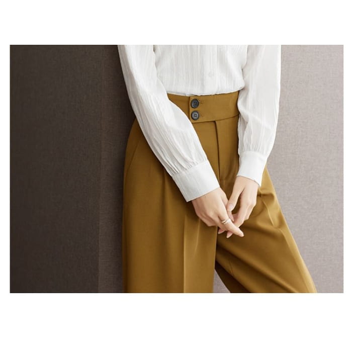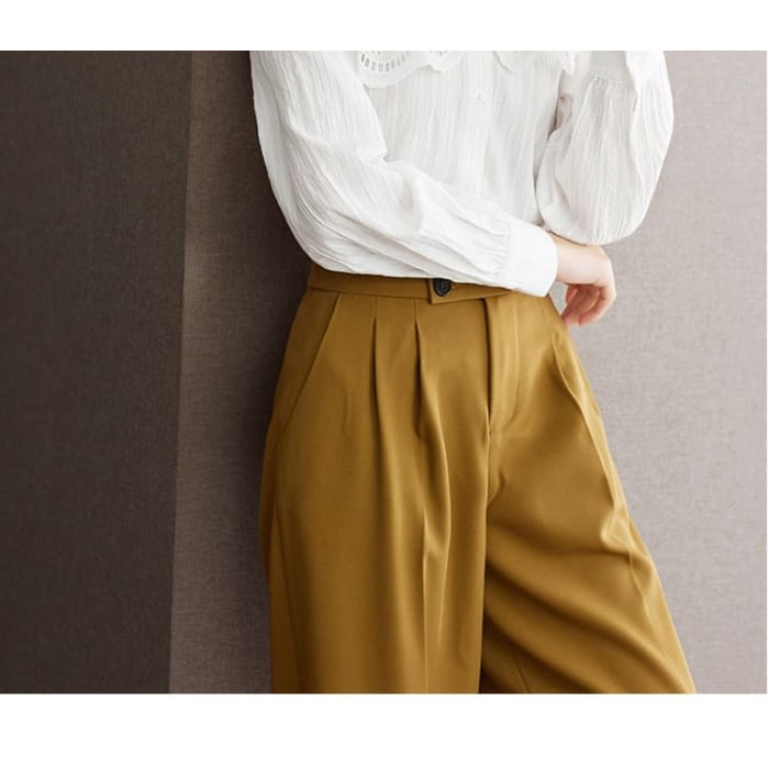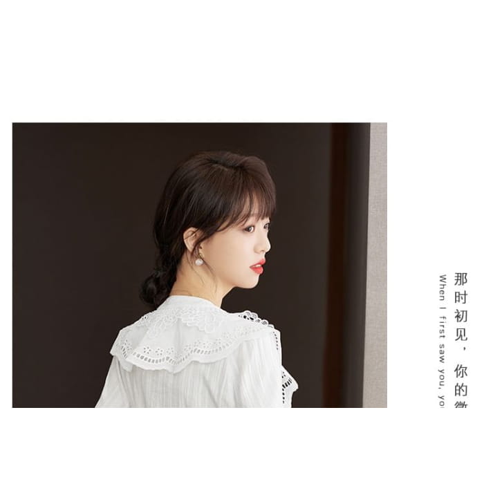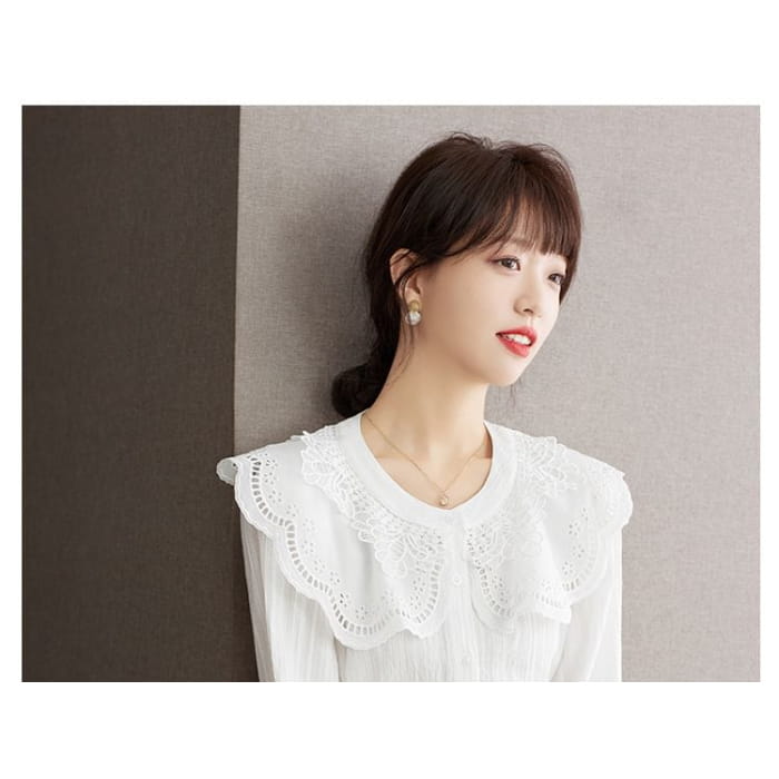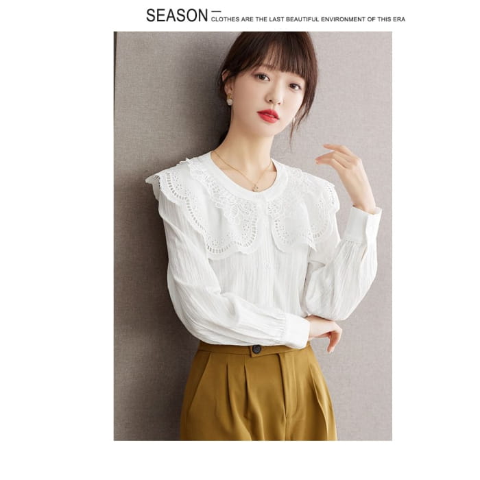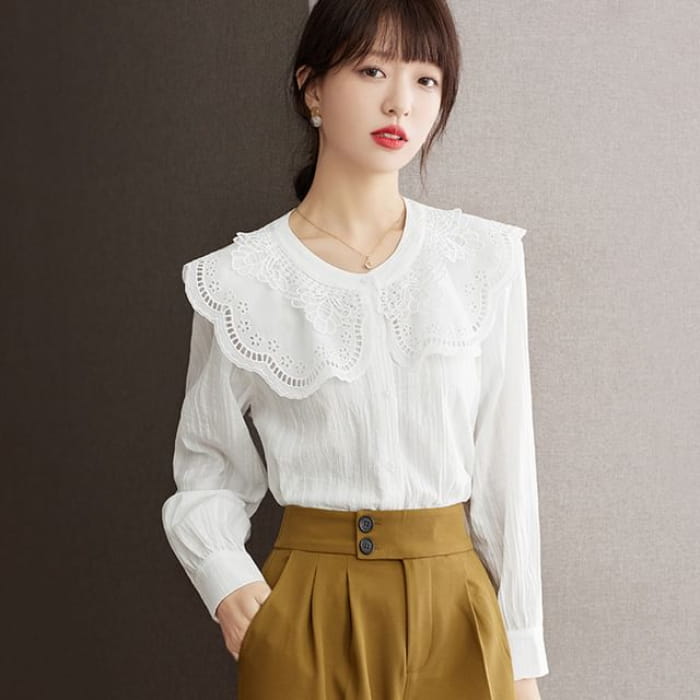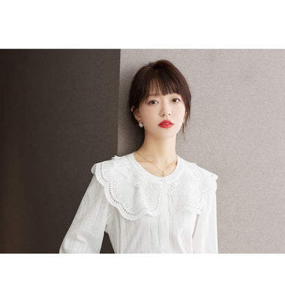 Langärmlige Bluse mit Rundhalsausschnitt, Kragen und bestickter Spitze