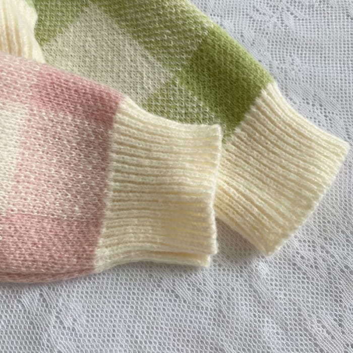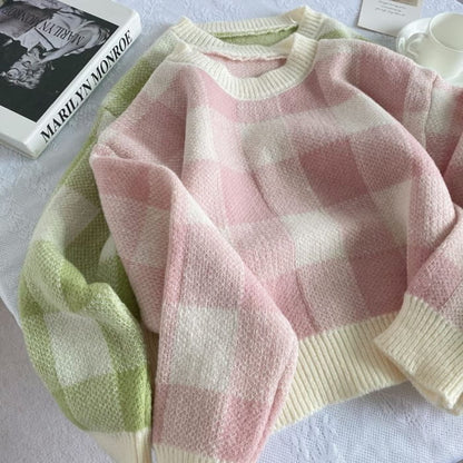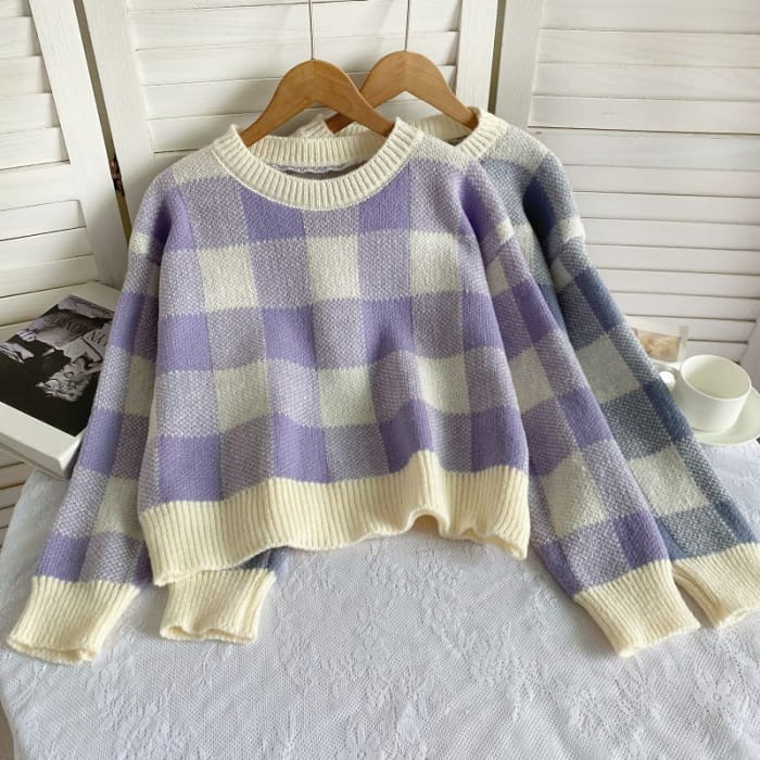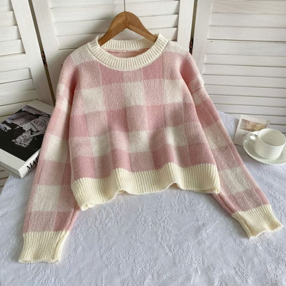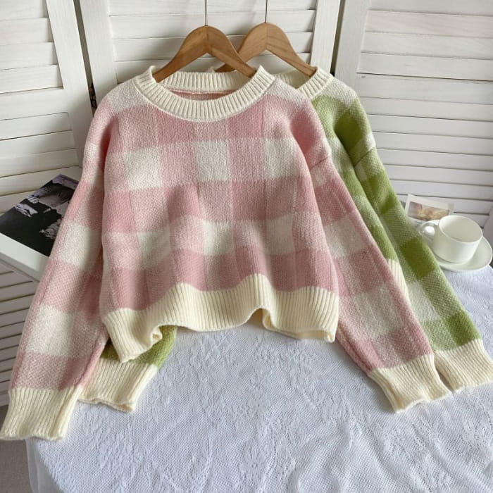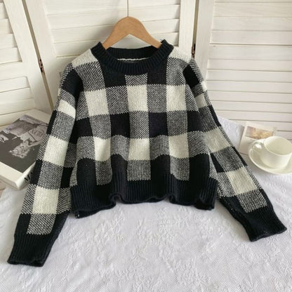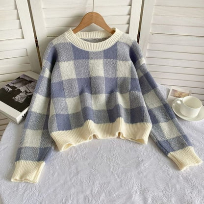 Langärmliger Rundhalspullover mit Vichy-Karos